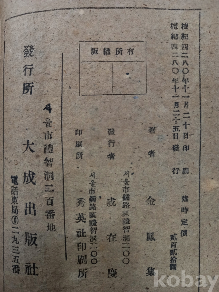 | 제조국 | 한국 | 연대 | 1945년~1959년 |