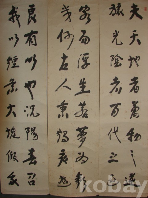 국전작가 소지 서정재(小智 徐禎在) 8곡병 글씨(126×32×8)입니다.