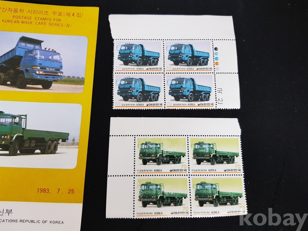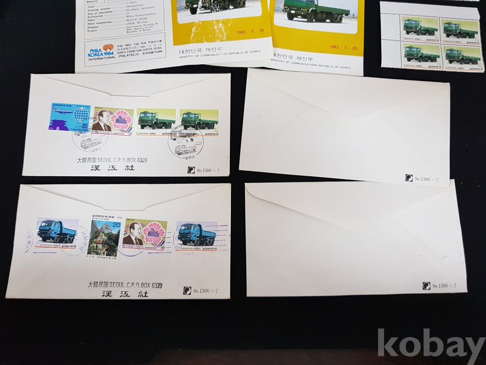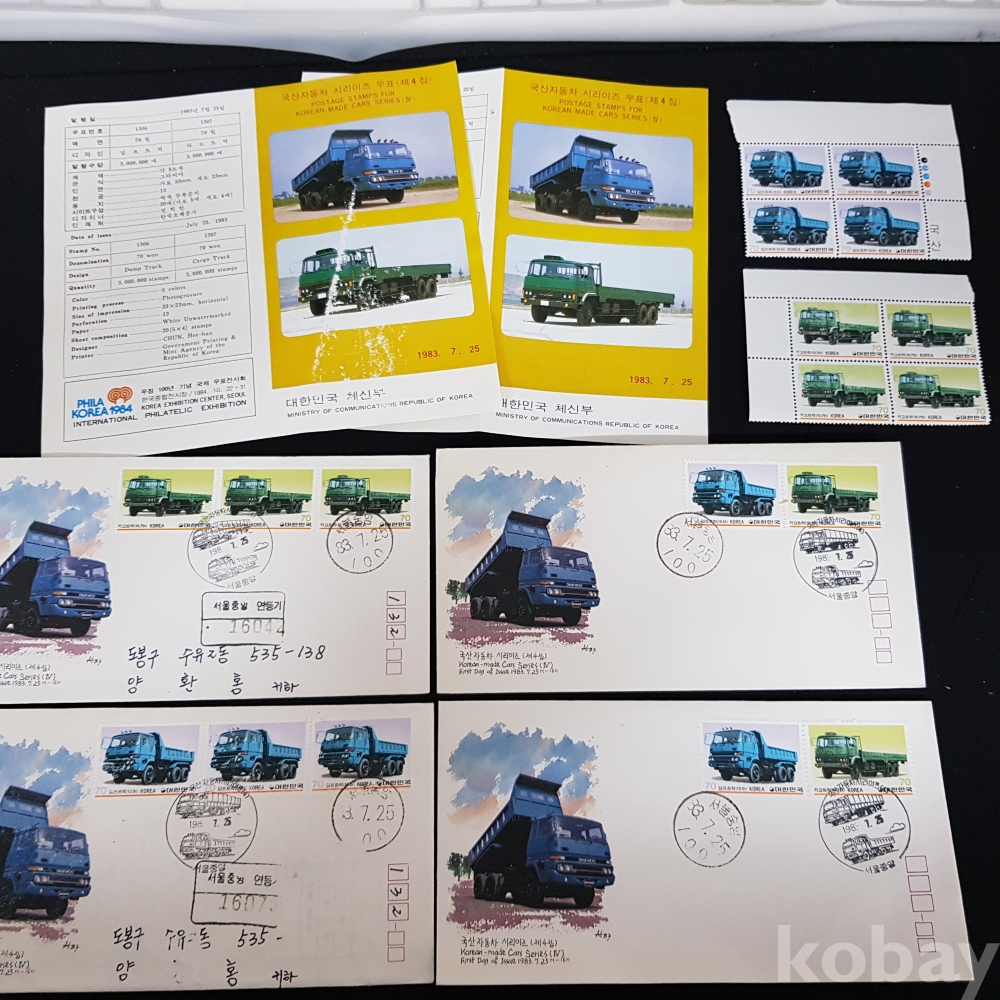 - 1983년 국산 자동차 시리즈 제 4집 안내카드, 초일봉피, 명판 등 모음
