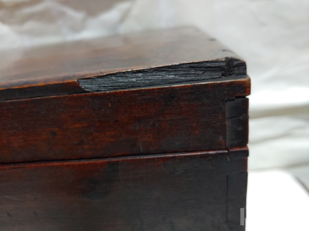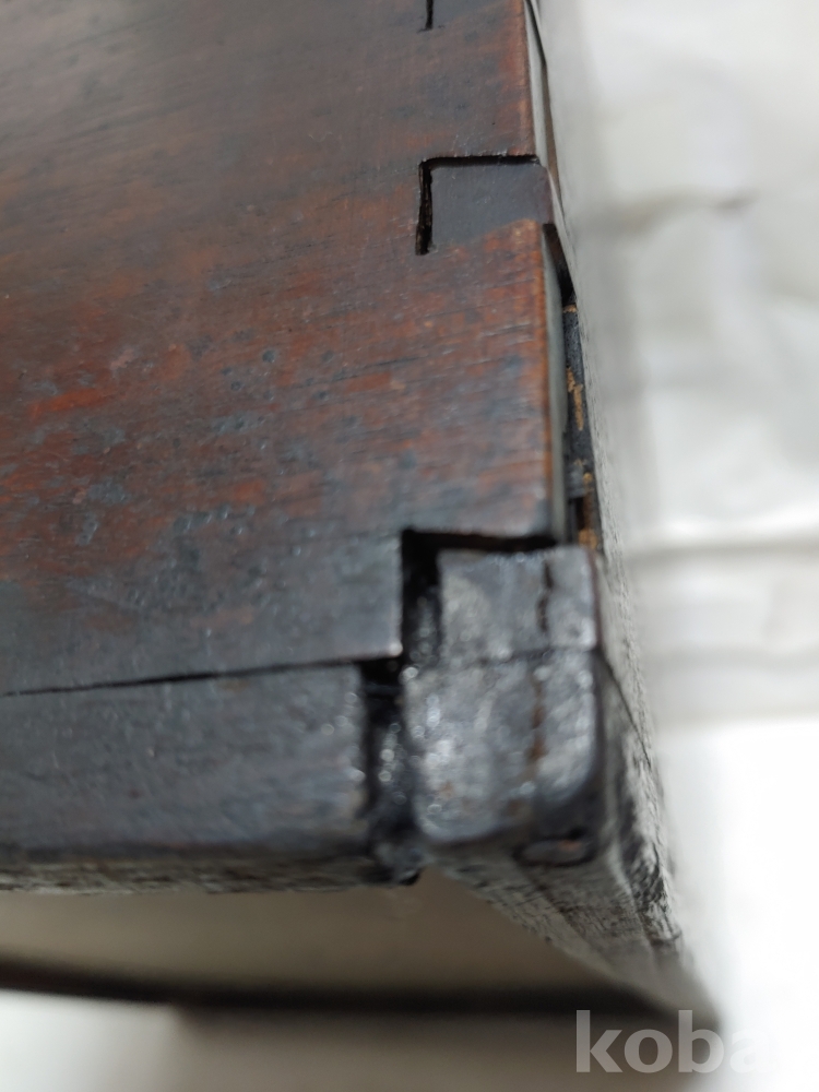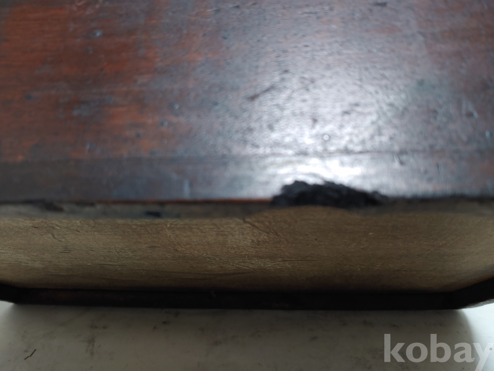 옆면의 하단모서리에 사귀물림에 벌어짐이 있는 부분이 있으며