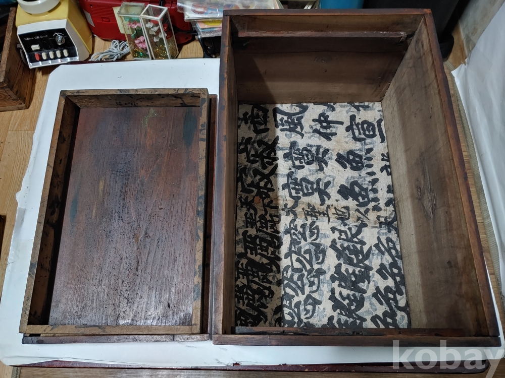""사궤물림과 나무못에 옛날 소나무 연상 대형 벼루집""