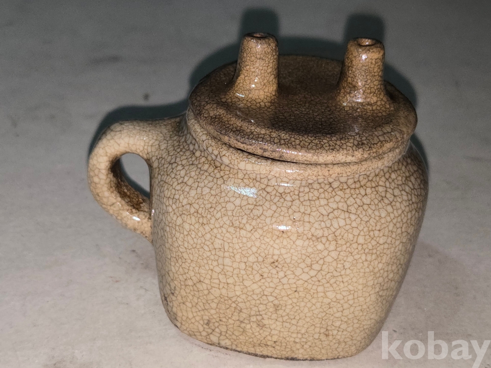 등잔 전체에 잔잔한 빙렬이 고풍스러운 백자도자기 쌍심지 등잔 입니다.