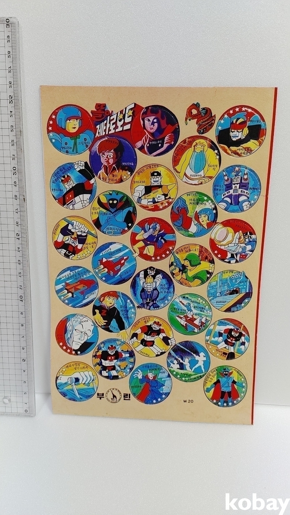 예전 오리지널 똘이와 제타로보트 딱지입니다