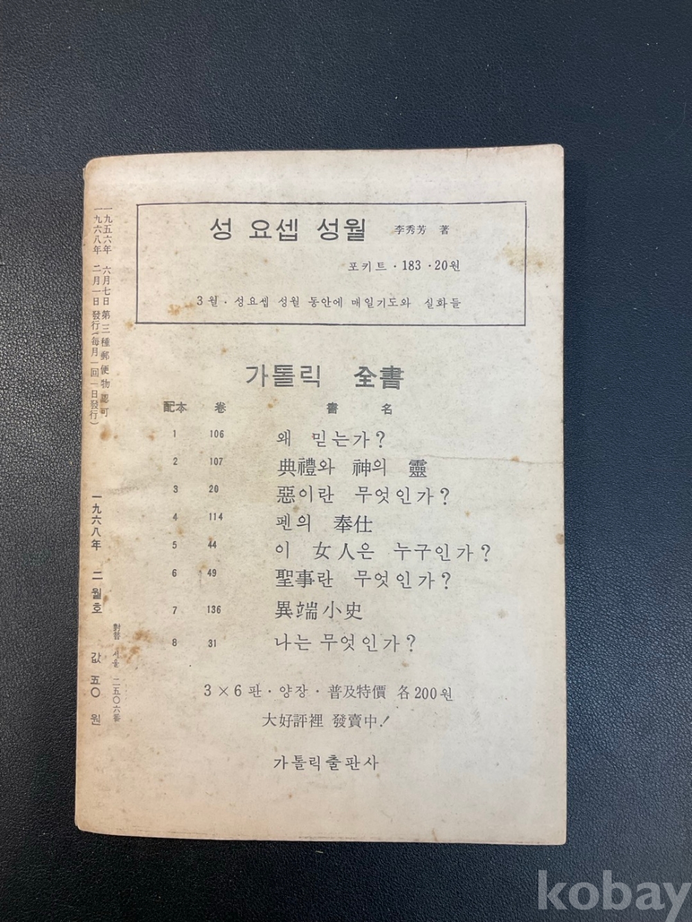 [한국현대사, 천주교, 육당의 문학, 천명사상] <카톨릭청년> 1968년 2월, p. 100. 상태 중상급(사진참조)