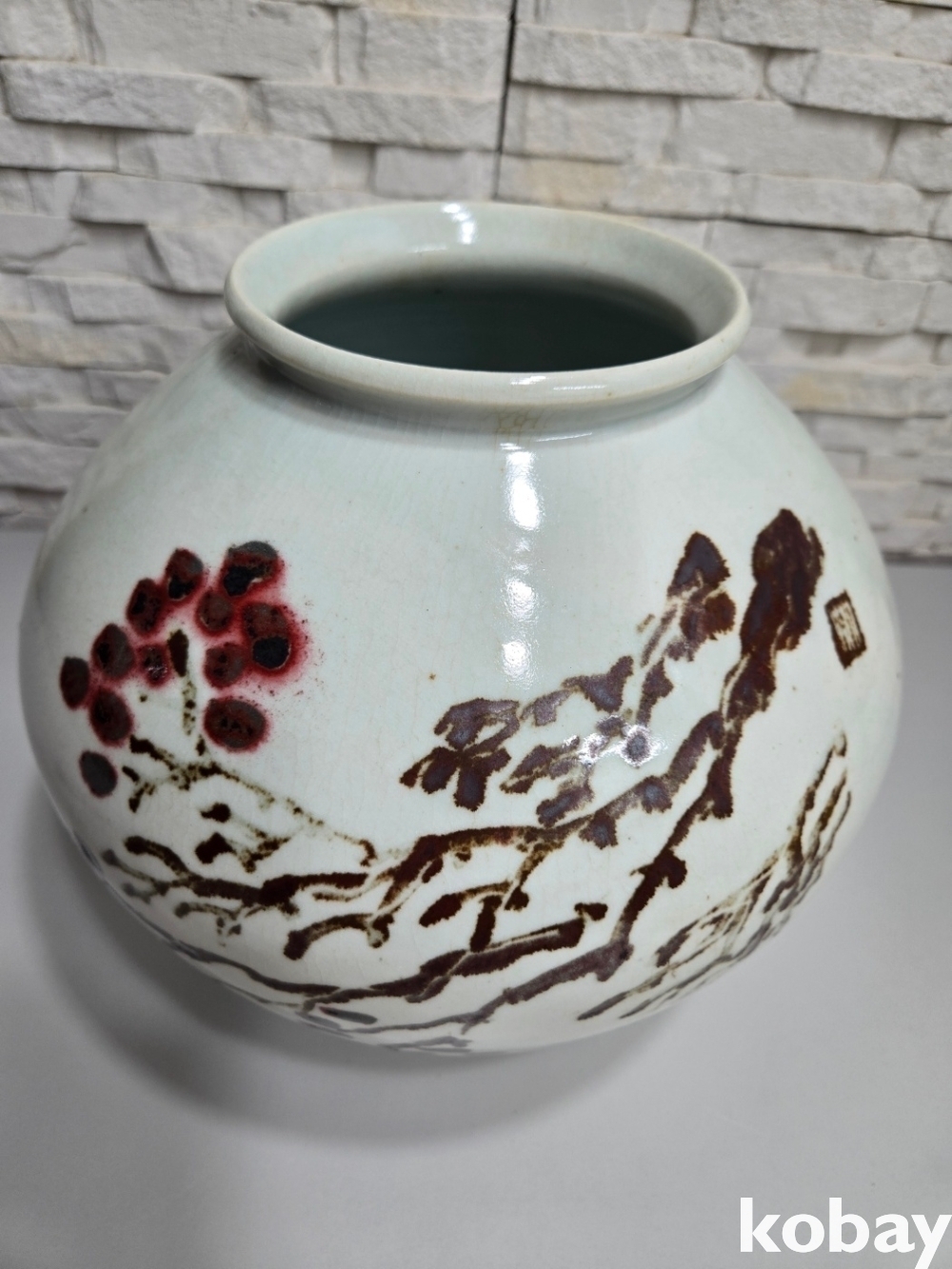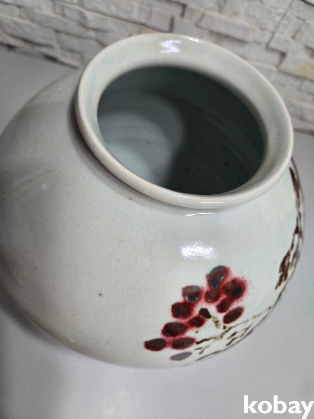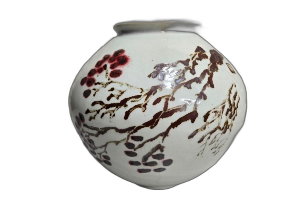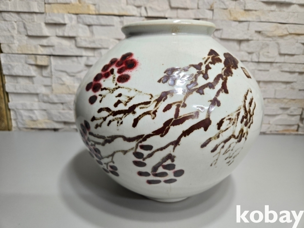 철화로 꽃 표현 달 도자기 입니다.