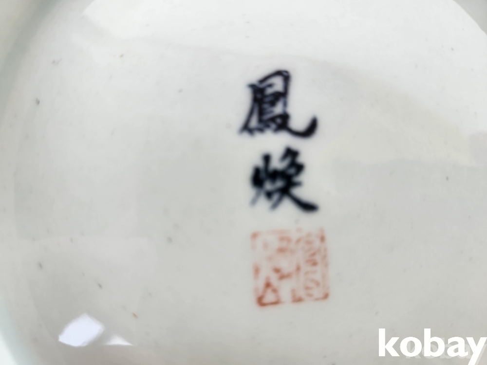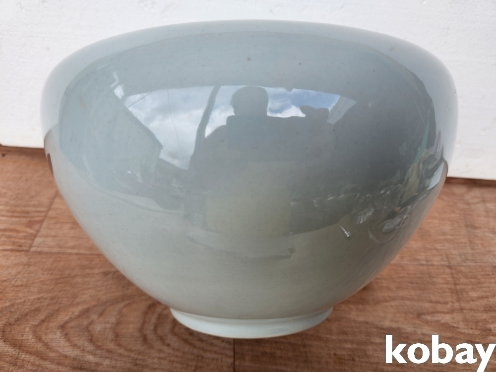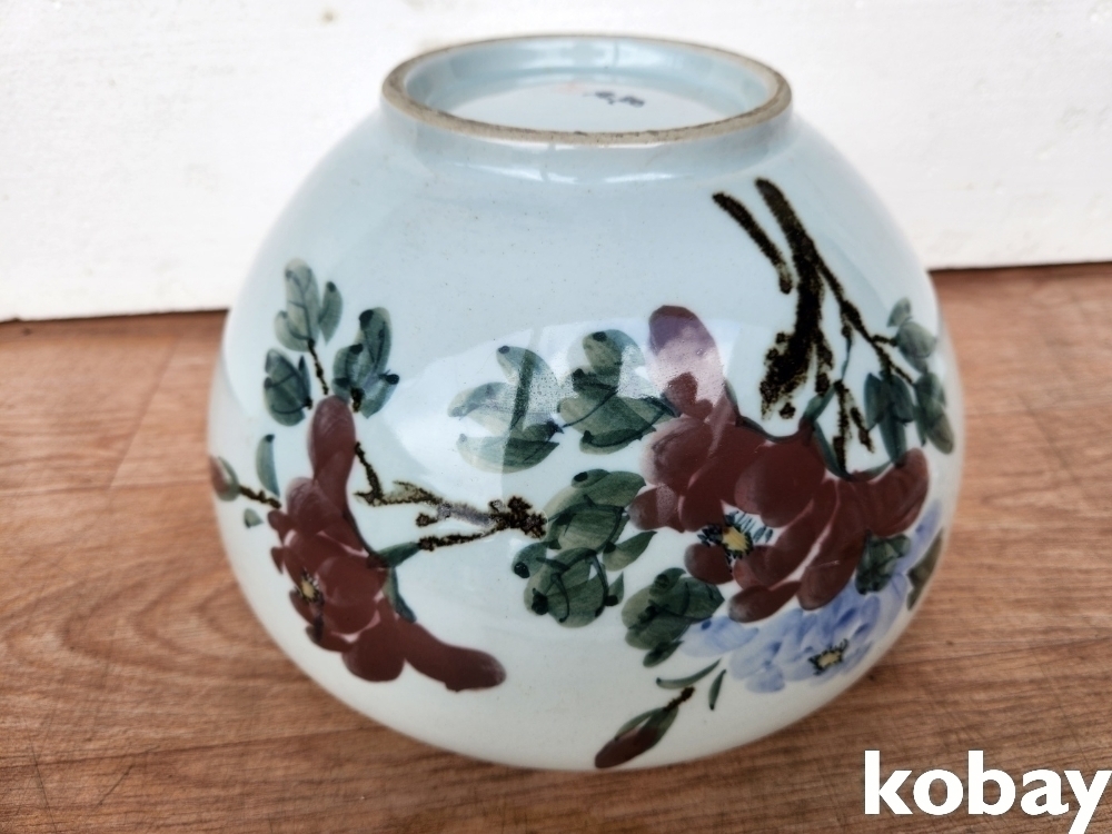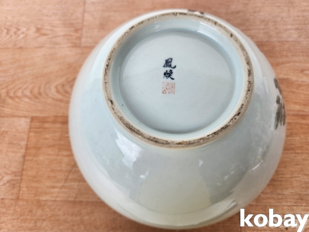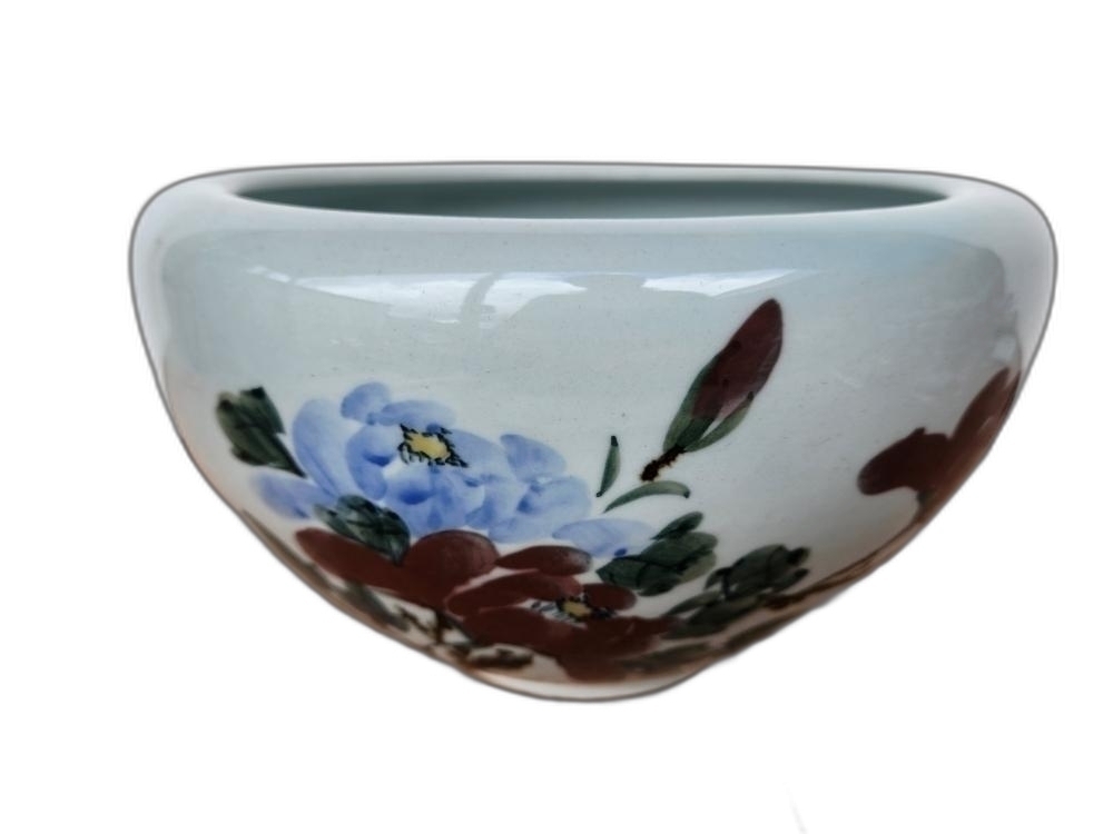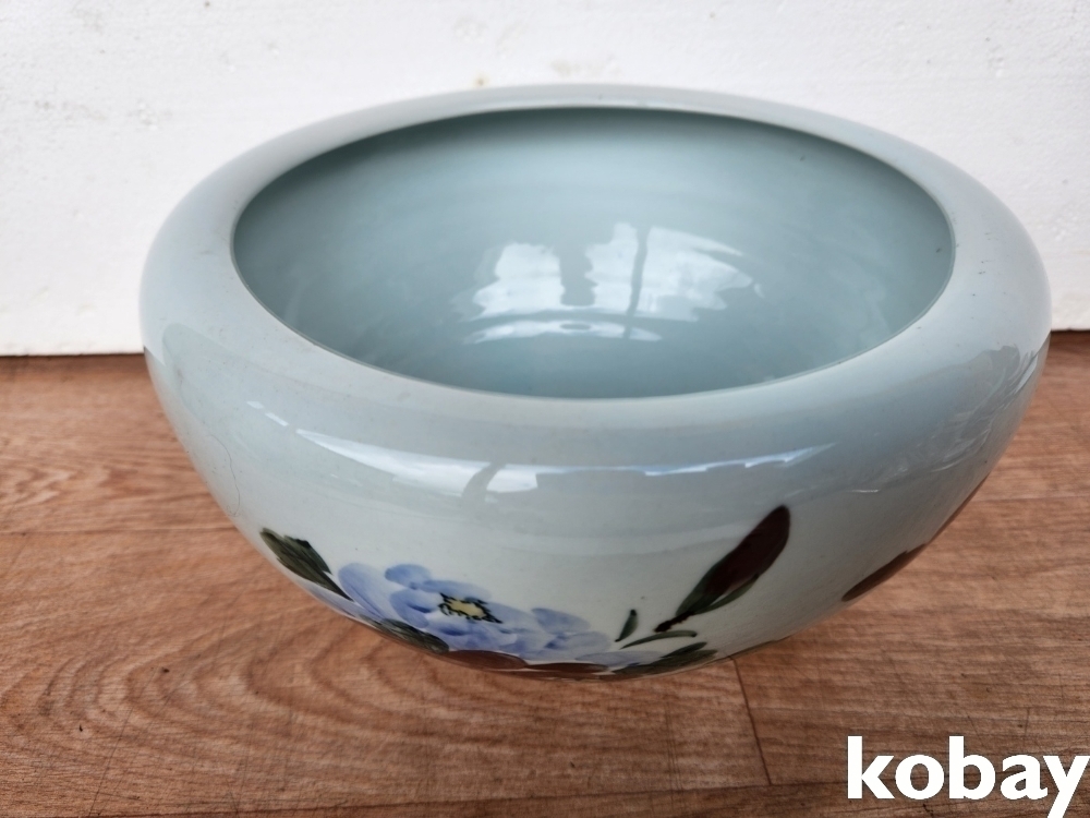 꽃 문양이 있는 수반 형 도자기 입니다.