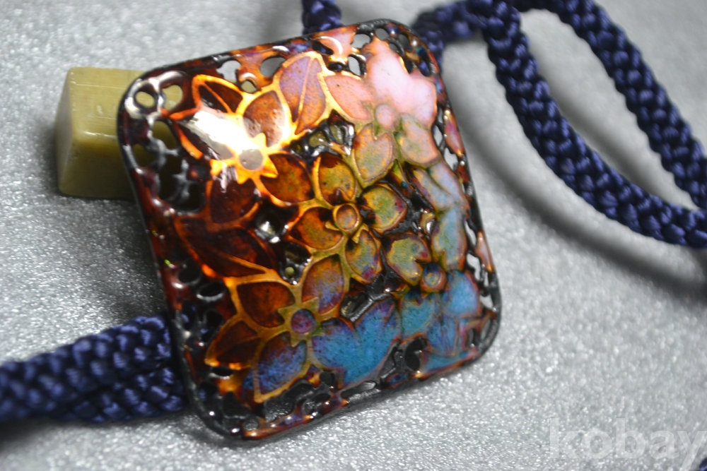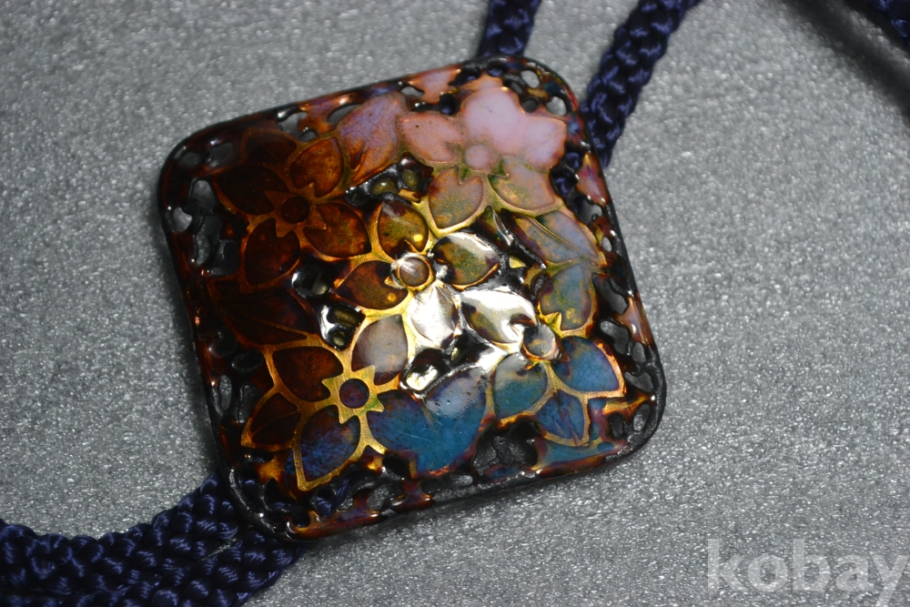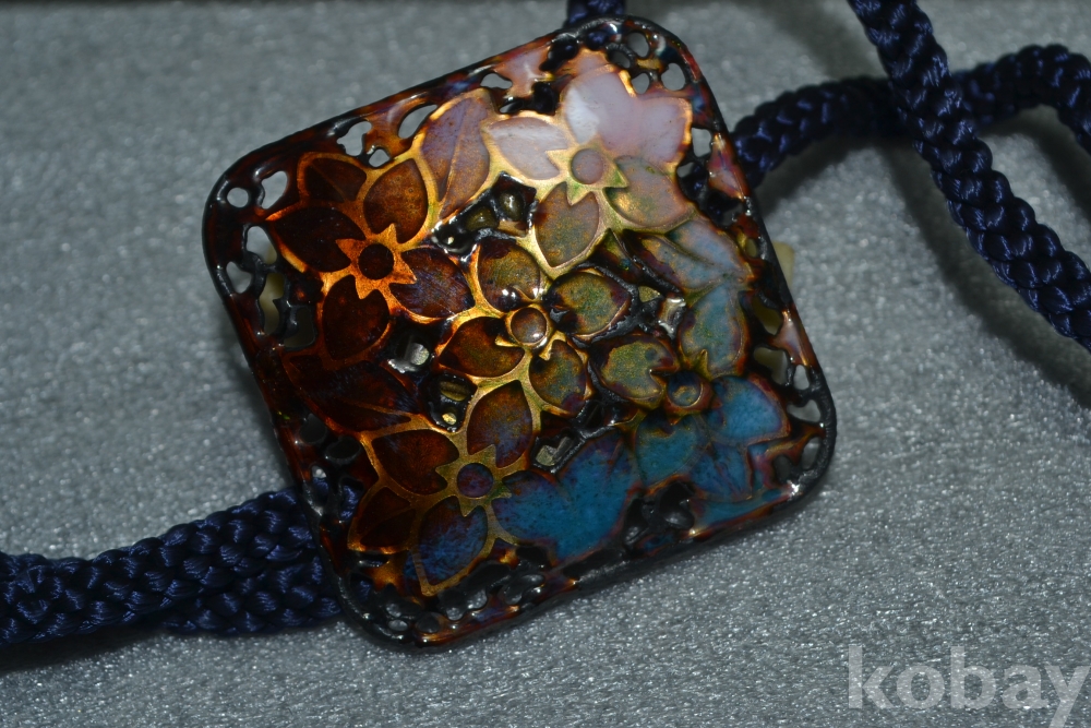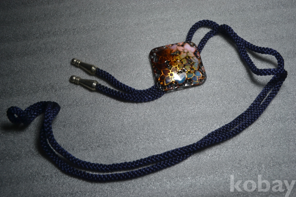 튼튼한 금속판위에 진하고 아름다운 칠보채색으로 가공되어 만들어진 고급 칠보알 루프타이 작품 입니다.