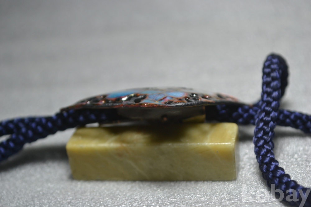 " 매우 섬세하고 고급스러운 아름다운 꽃문양 투각 디자인~ 금장채색 고퀄리티의 고급 칠보작품 (대형지름~)" ..고급 칠보(七寶) 루프타이~ 대형지름 3.7 cm X 3.7 cm 칠보채색이 매우 아름답고 멋진 꽃문양 투각 디자인 장식알 루프타이 작품~ / 깨끗하고 좋은 보존상태~