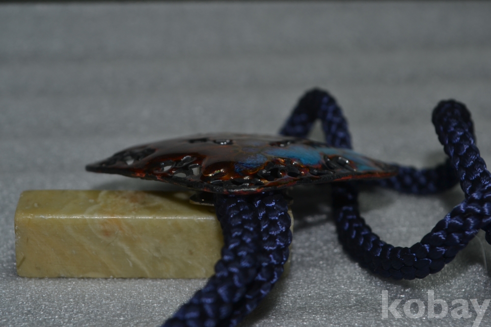 장식품 표면은 투각식으로 매우 섬세하게 화려한 채색과 표면광택이 뛰어난 최고급 수준급의 칠보(七寶)로 만들어진 칠보루프타이 작품 입니다.