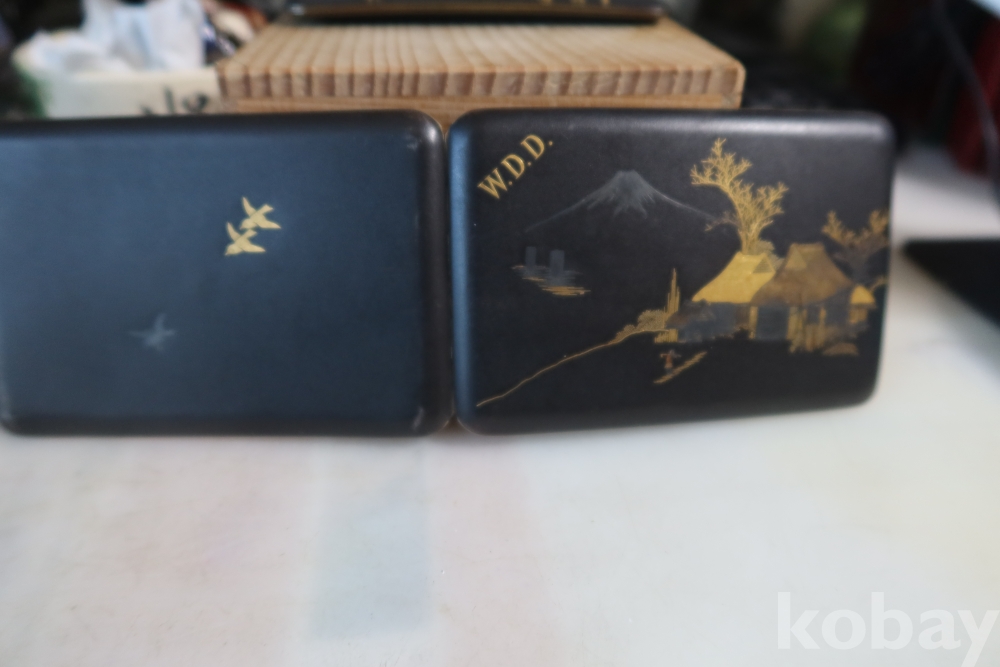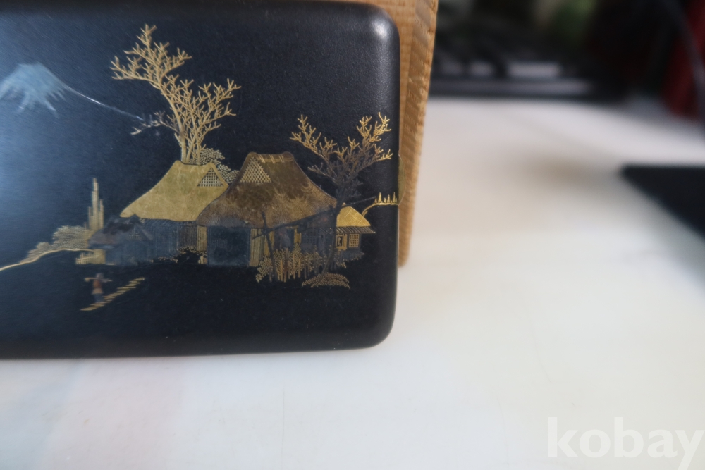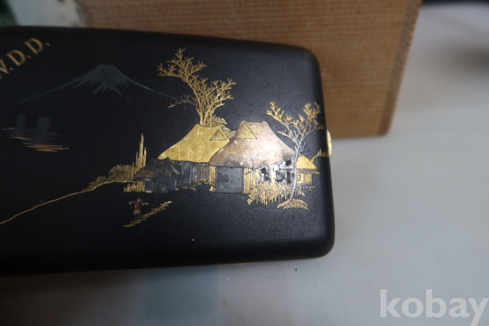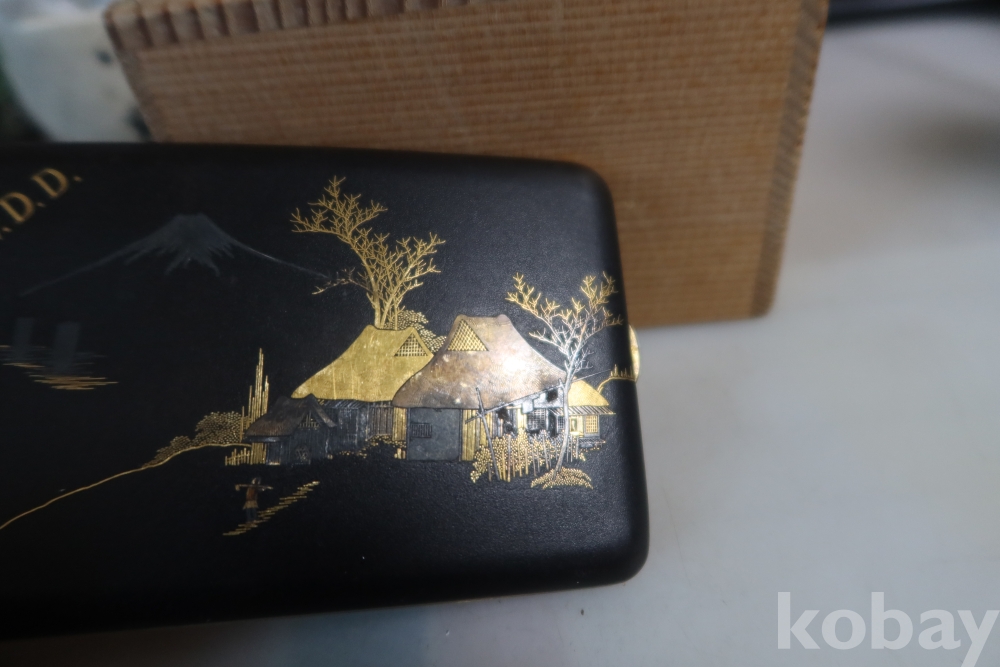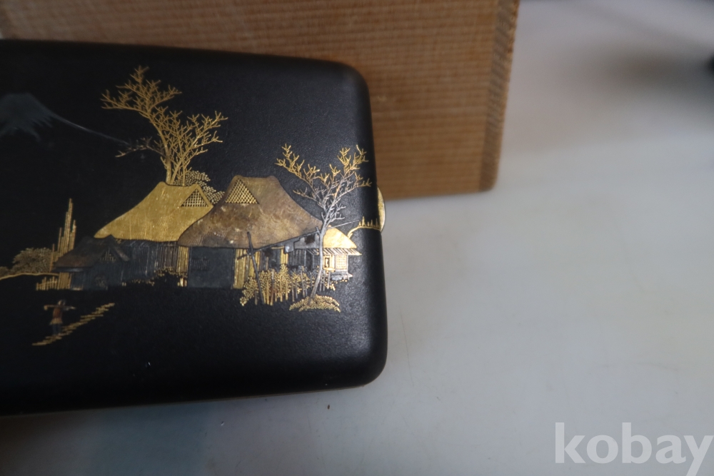 일본 담배 케이스 임니다 작가의 낙관을 가진 섬세 정교한 당대의 명품 임니다 후지산과 일본 집 등등 특유의 명품 임니다