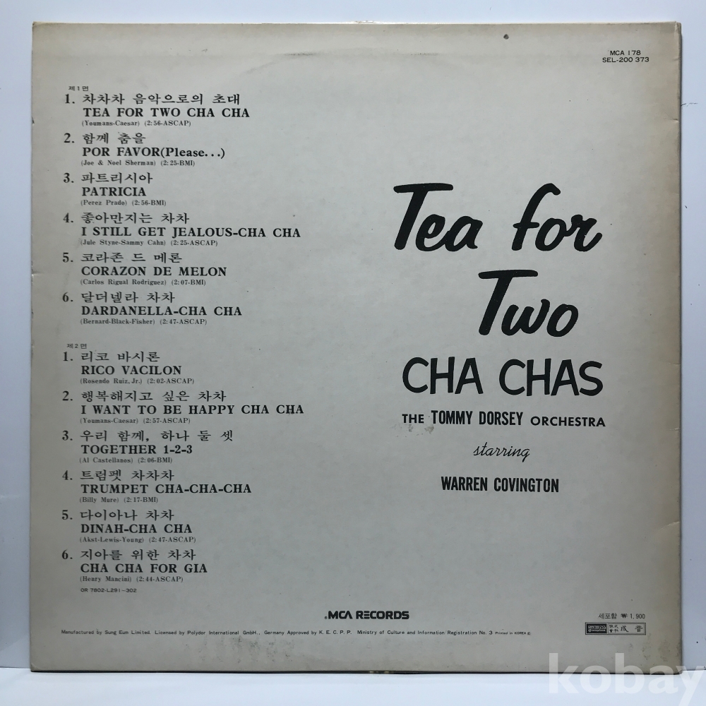 LP 86,050-26 The TOMMY DORSEY Orchestra - TEA FOR TWO CHA CHAS _ 자켓 EX+ 알판 EX+ 80 년 국내반