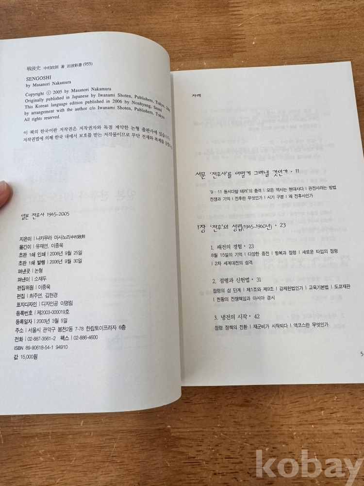 [일본현대사] 나카무라 미사노리 저, 유재연 이종욱 옮김, <일본 전후사 1945-2005>, 논형, 2012, p. 319, 상태 중상급(사진참조)