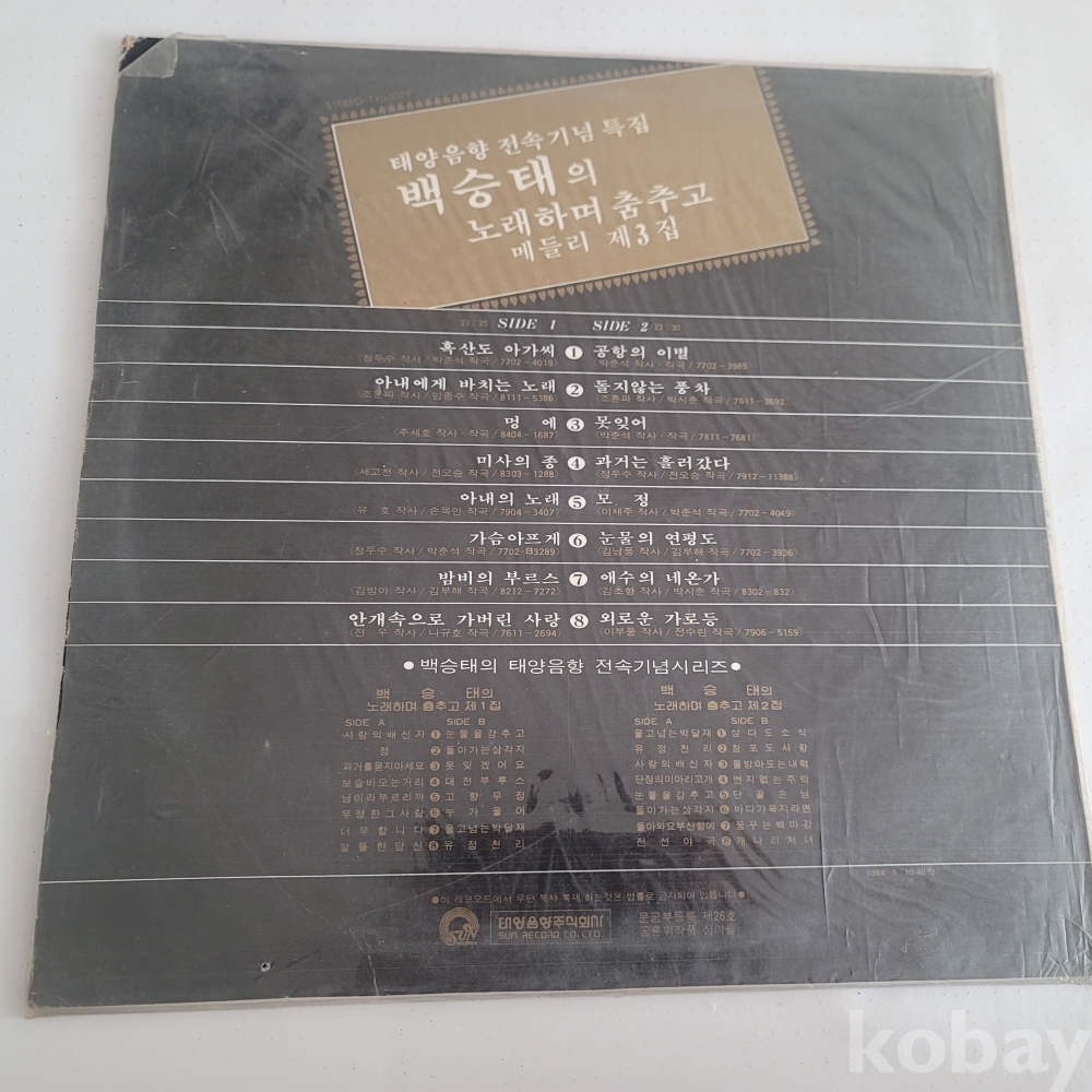 백승태의/노래하며 춤추고 3/흑산도아가씨.공항의이별.아내에게 바치는노래.돌지않는풍차.
