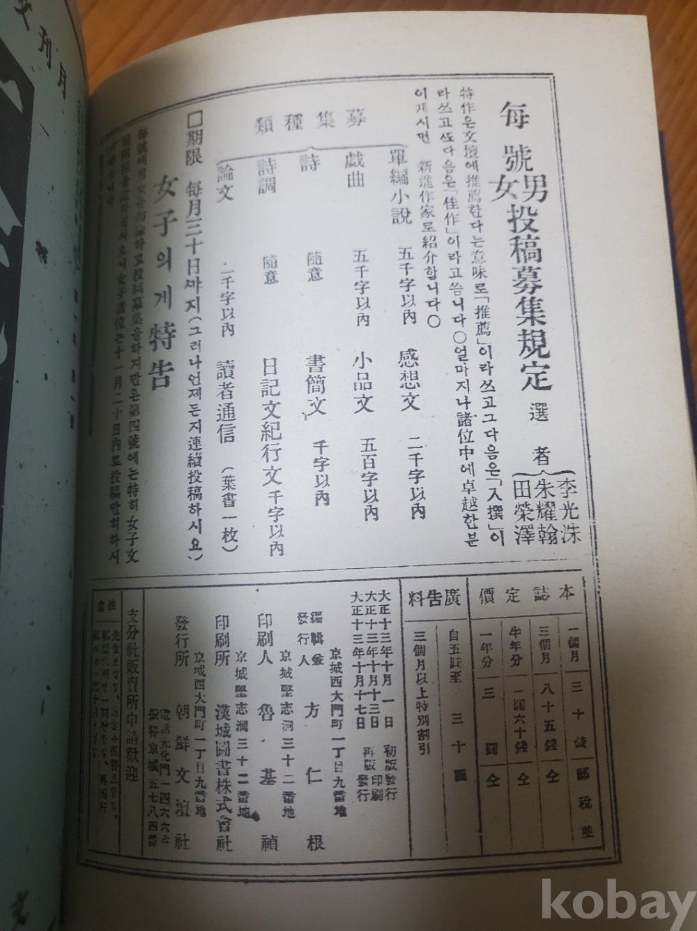 조선문단(1924년, 71쪽) / 문예시대(1926년, 120쪽) /