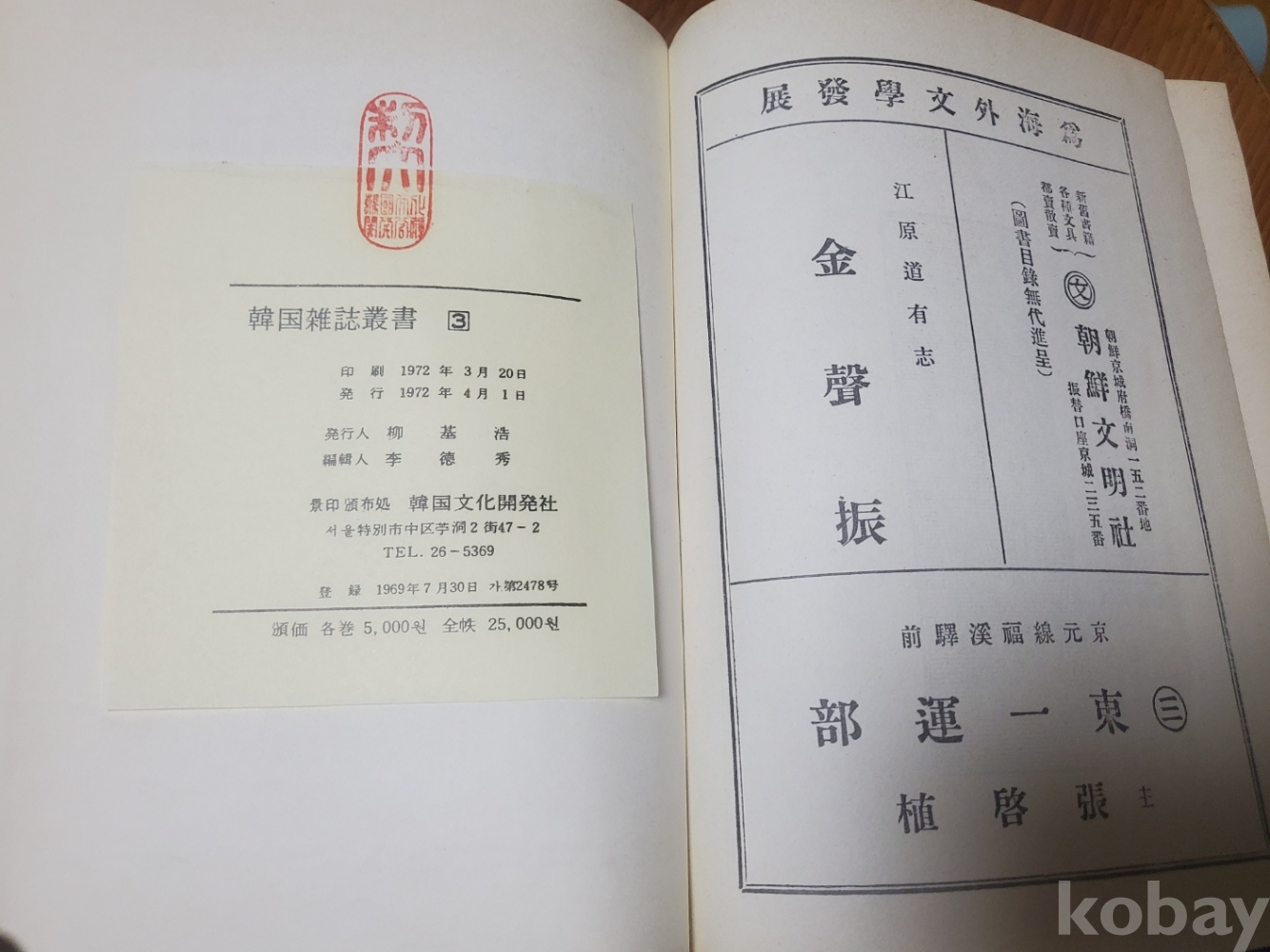 1. 한국잡지총서 3 - 영대 생장 조선문단 문예시대 해외문학, 한국문화개발사, 1972년, 상태 상(도서관 흔적 있음), 사진 참조