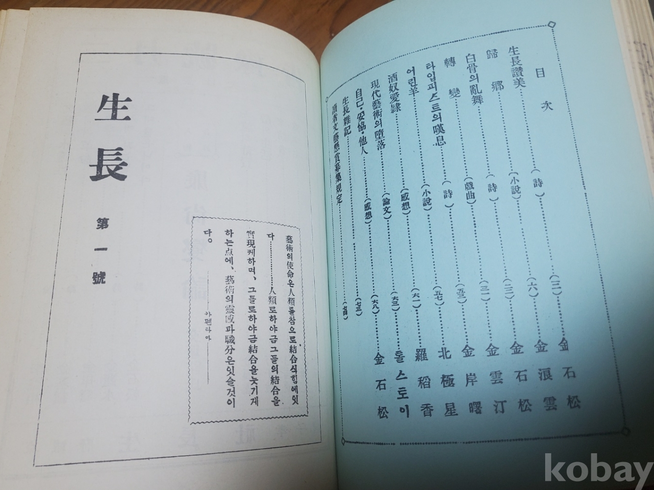 영대 창간호(1924년, 166쪽) / 생장(1925년, 76쪽) /