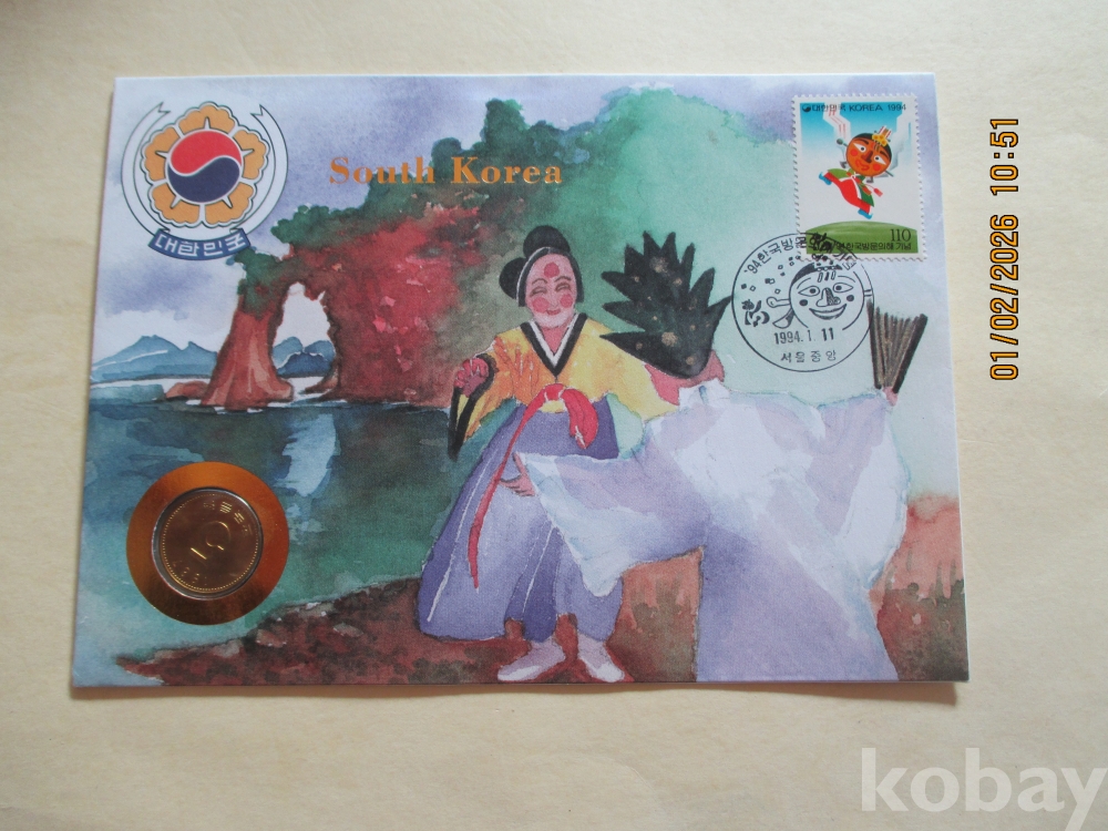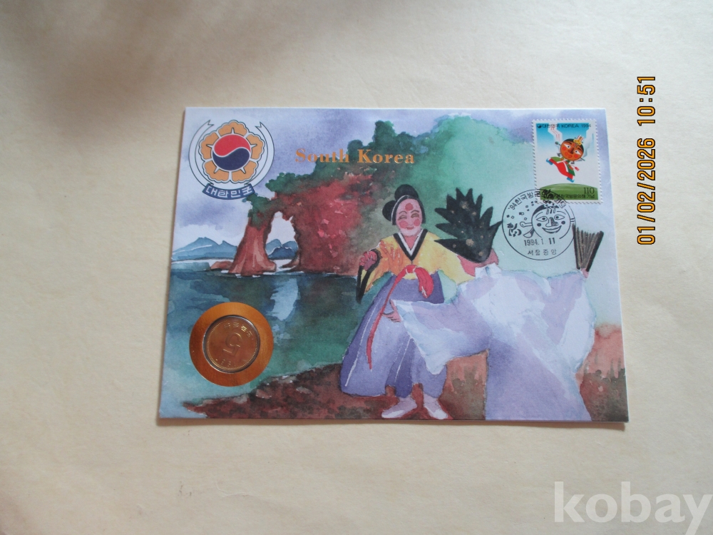 한국은행에서 외국에 베포한 귀한5원1987년과우표 첩등세트 미사용