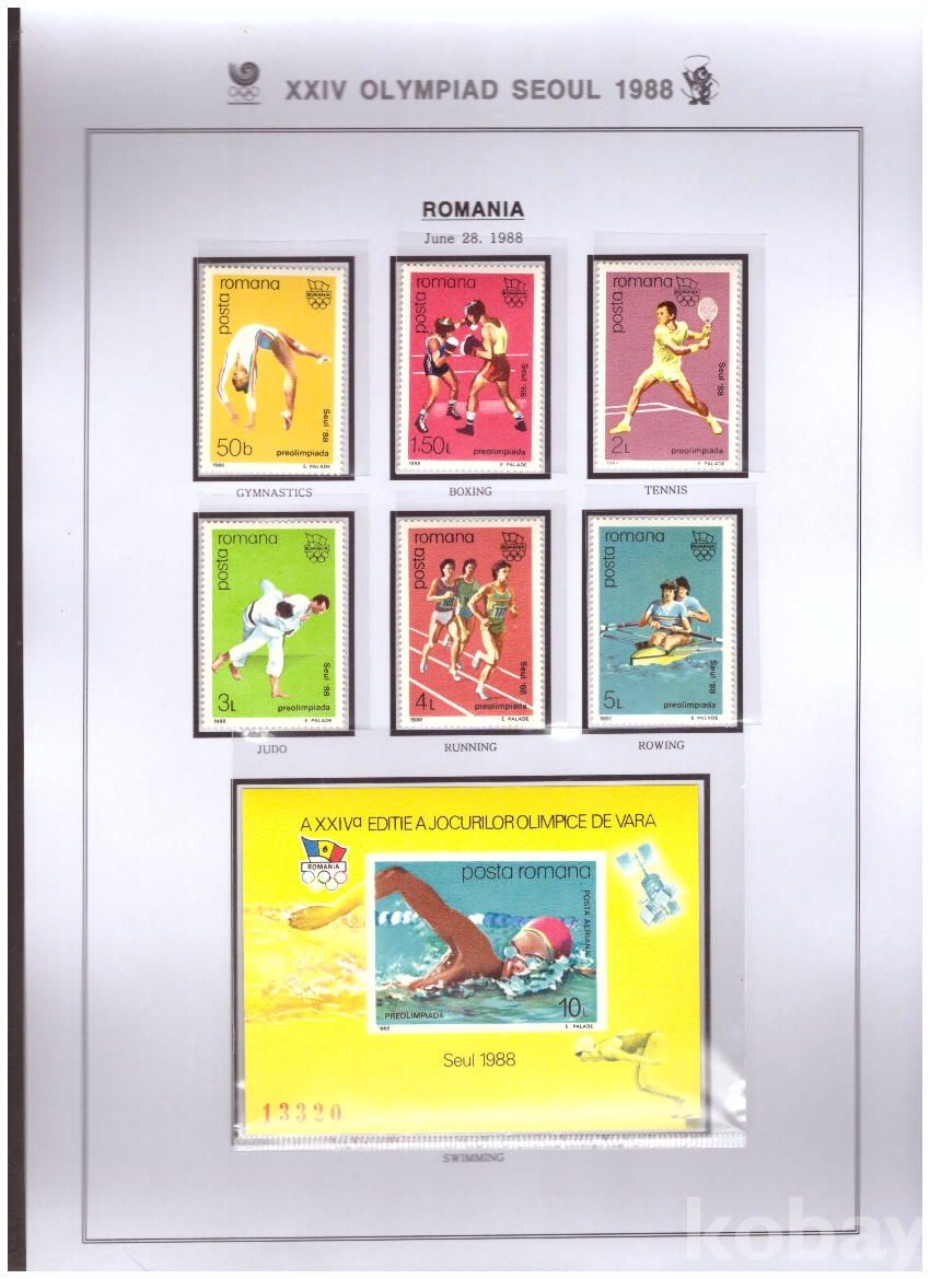(서울올림픽) Romania (루마니아) 1988.6.28 체조외 6완+s/s(무공) MNH