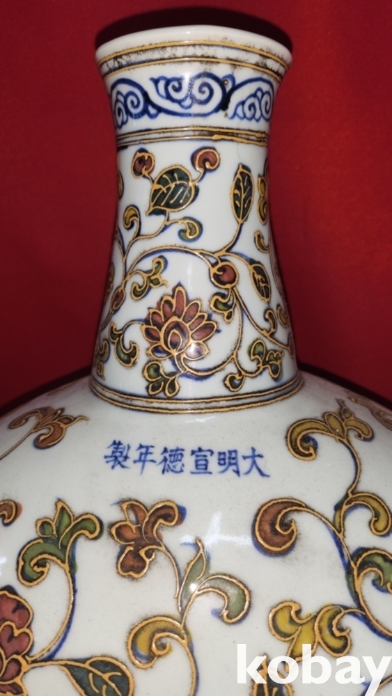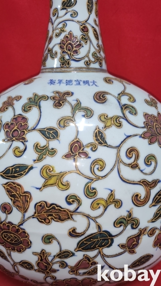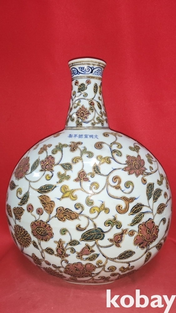 대명선덕연제 관지있는 범랑채 전지 화훼문 ( 花卉) 편/+0병입니다,
