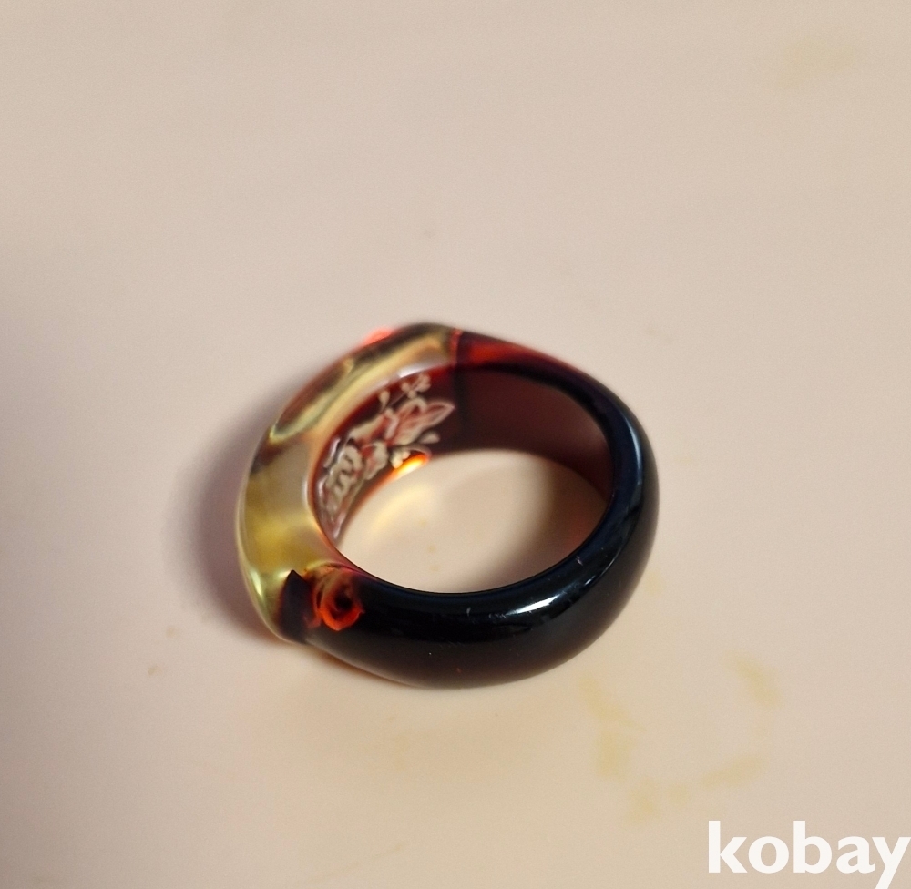 천연호박처럼 안쪽으로 인타리오 조각을 멋지게 만든 수지제 반지입니다.