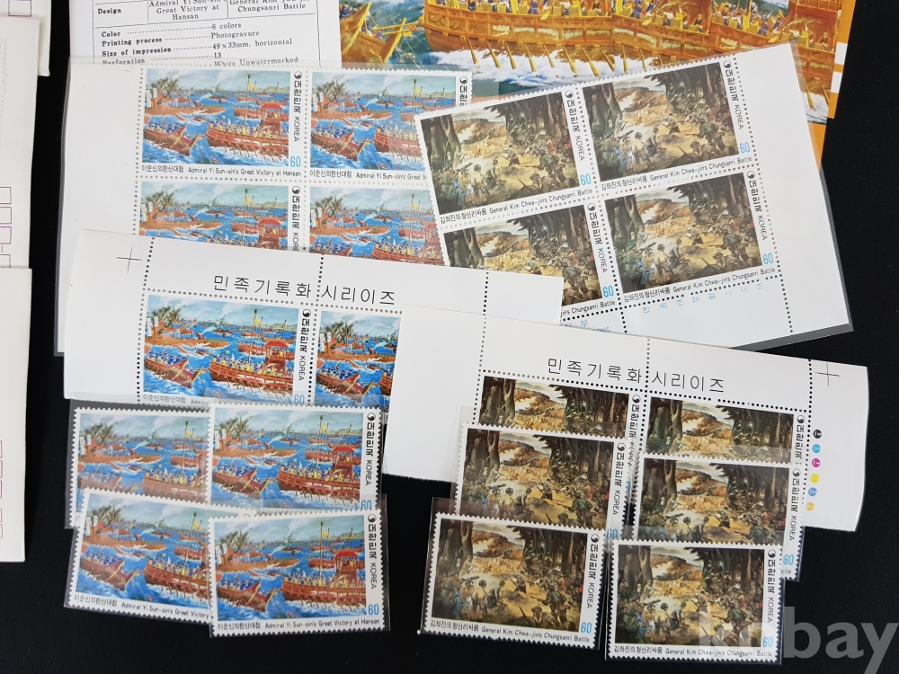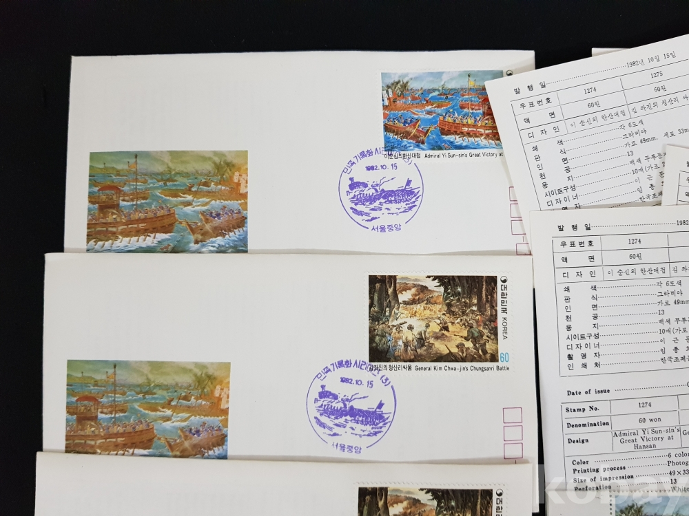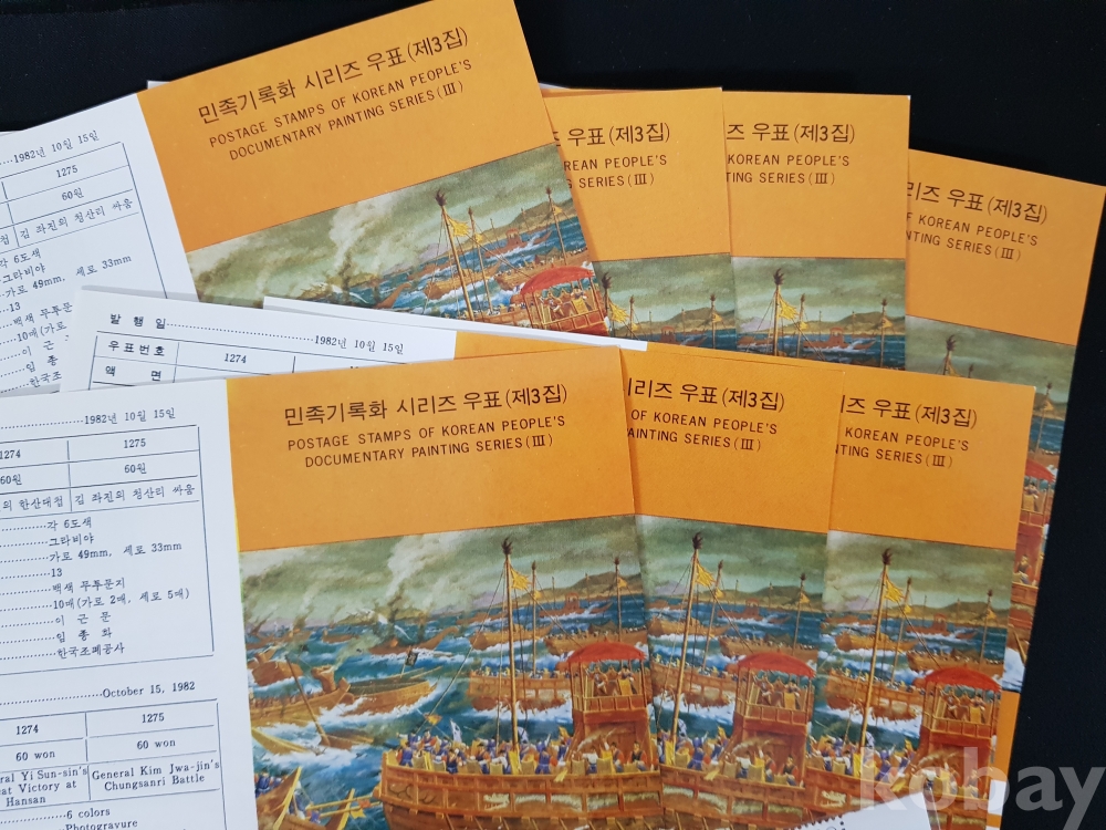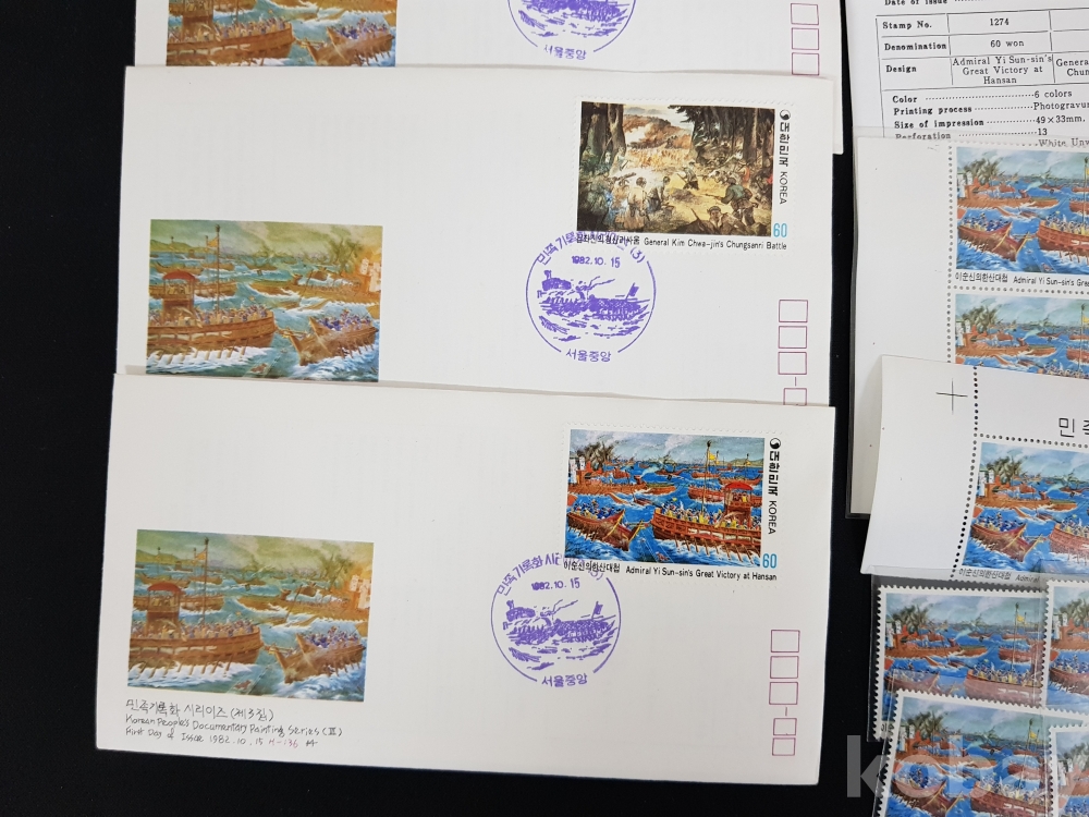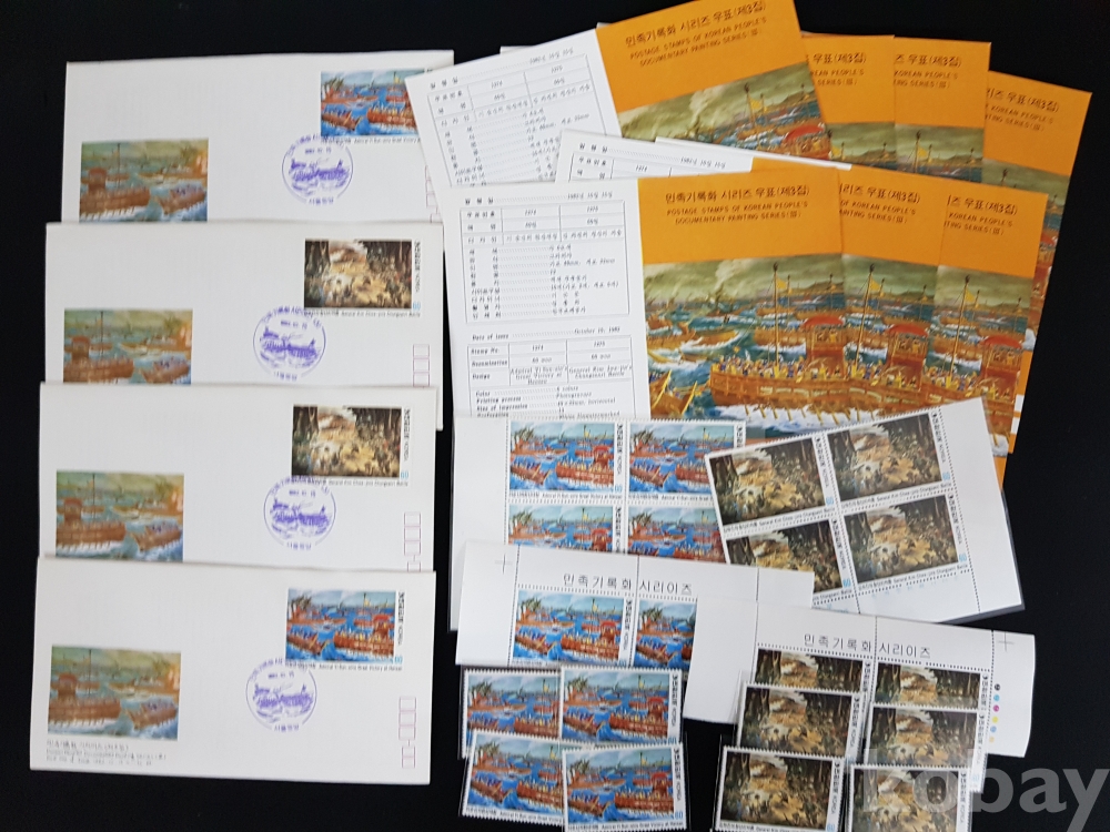 - 1982년 민족기록화 시리즈 제 3집 안내카드, 초일봉피, 명판 등 모음