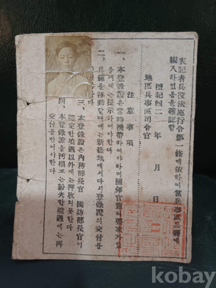 1955년 병적 증명서