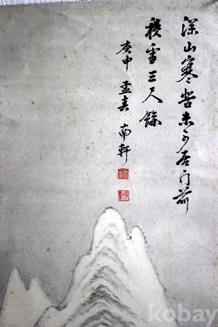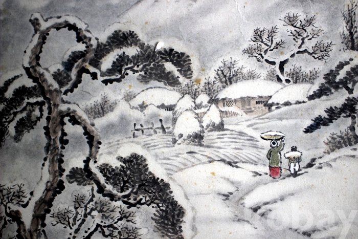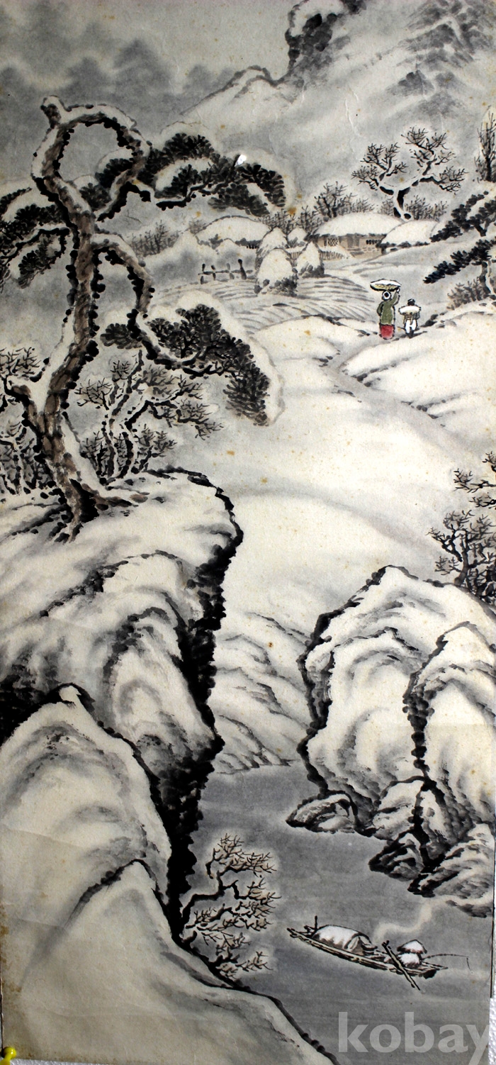 국전 입선작가인 南軒(남헌) 서정철의 작품 (2) - 눈 쌓인 초가집으로 귀가하는 모자의 모습이 담긴 겨울풍경