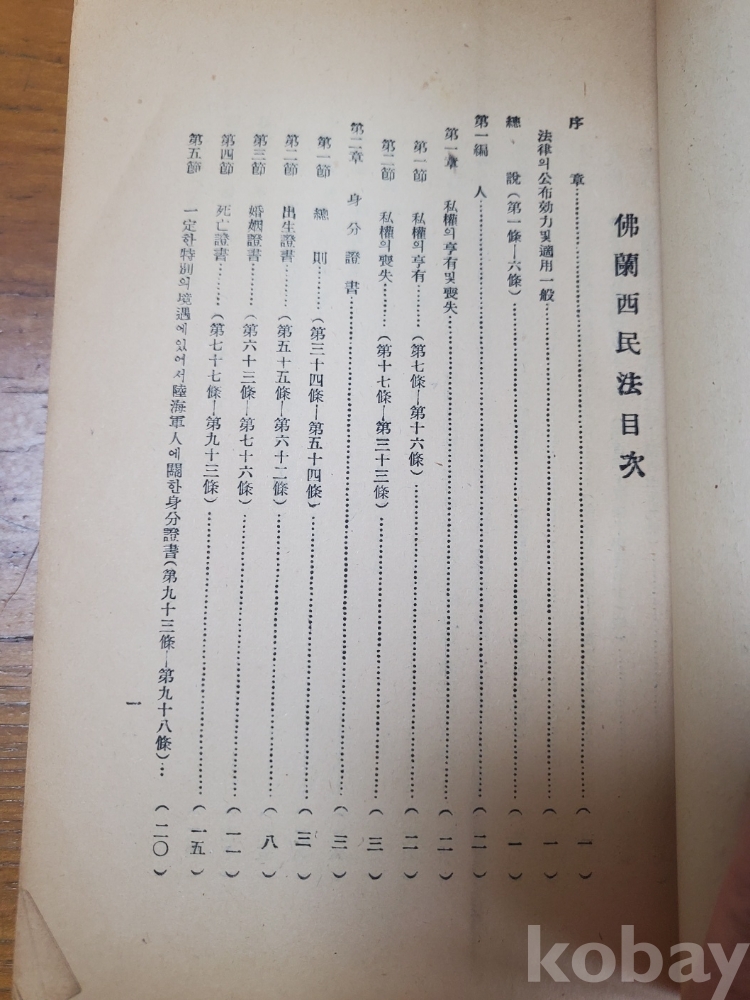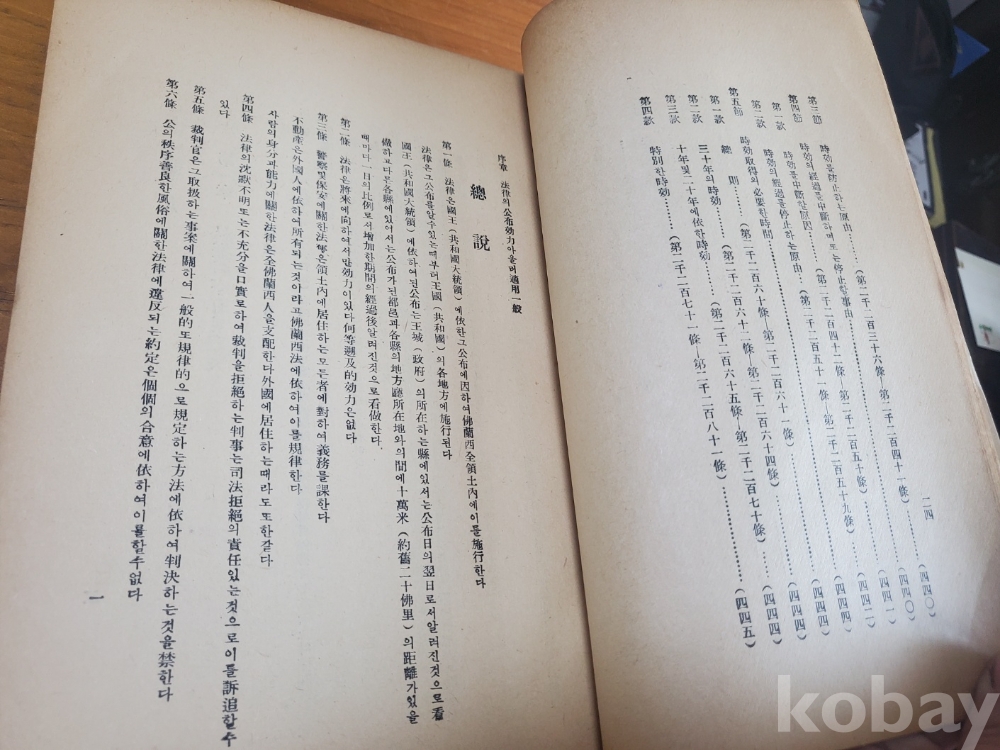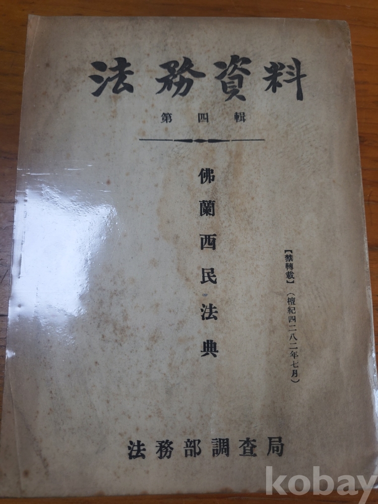 1. 법무자료 제4집 - 불란서민법전, 법무부조사국, 1948년, 448쪽, 상태 상, 사진 참조