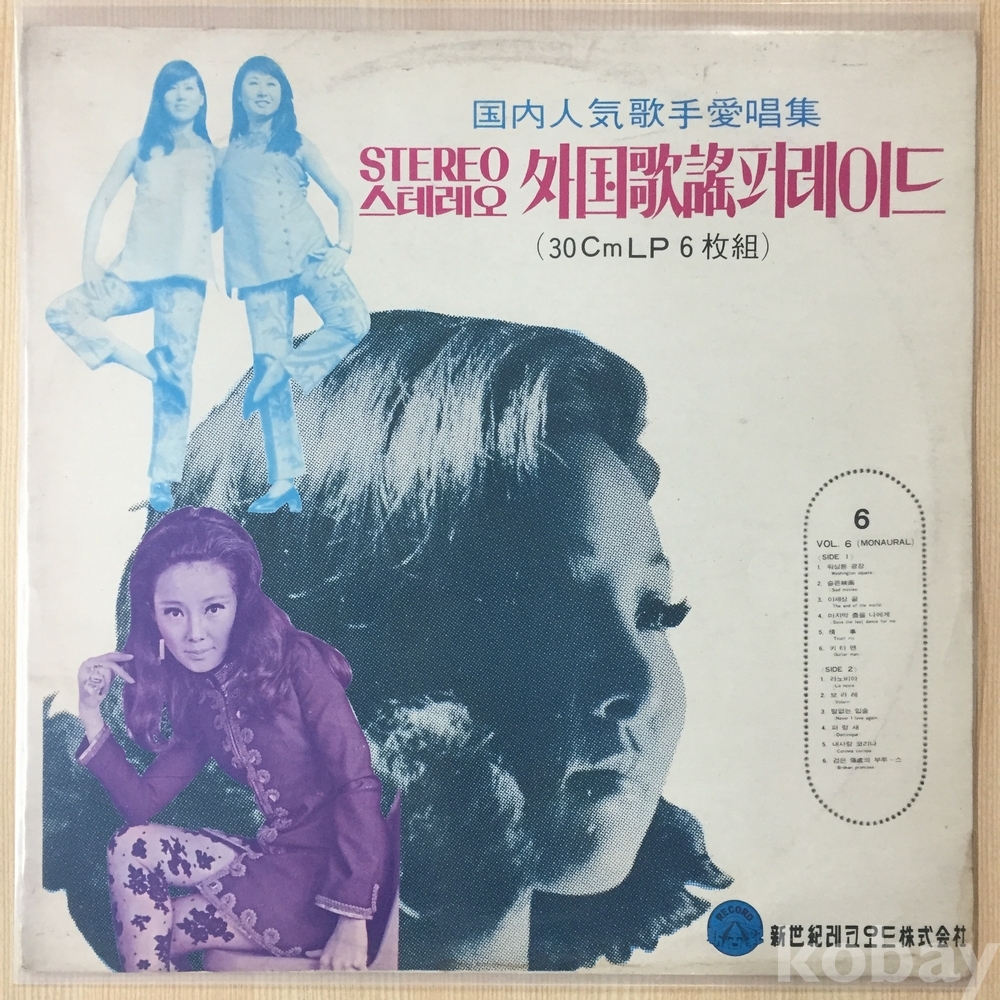 1. 워싱톤광장(Washington Square)(이씨스터즈) 2. 슬픈 영화(Sad Movies)(이씨스터즈) 3. 이세상끝(The end of the world)(이씨스터즈) 4. 마지막 춤을 나에게(Save the last dance for me)(김선,점블씨스터즈) 5. 정사(Trust me)(이씨스터즈) 6. 키타멘(Guitar man)(점블씨스터즈) | 1. 라노비아(La novia)(위키리) 2. 보라레(Volare)(위키리) 3. 말없는 입술(Never Love Again)(리타김) 4. 파랑새(Dominique)(이씨스터즈) 5. 내사랑 코리나(Corinna Corinna)(이씨스터즈) 6. 검은 상처의 부르스(Broken promises)(김애자) |