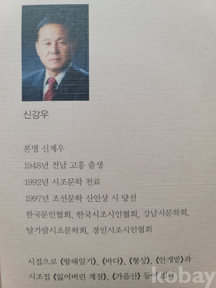신강우(전라남도 고흥: 1948) 저자서명 시조집.