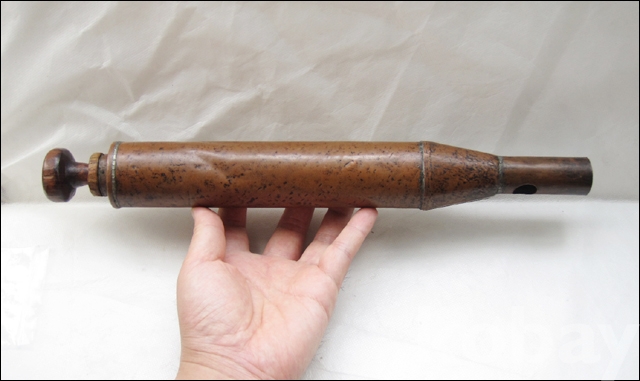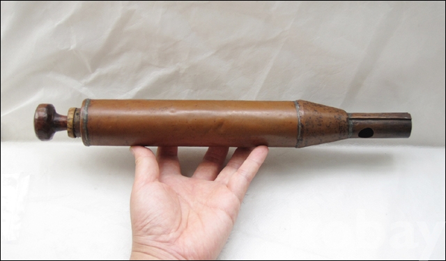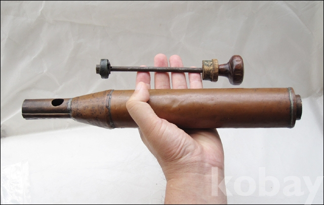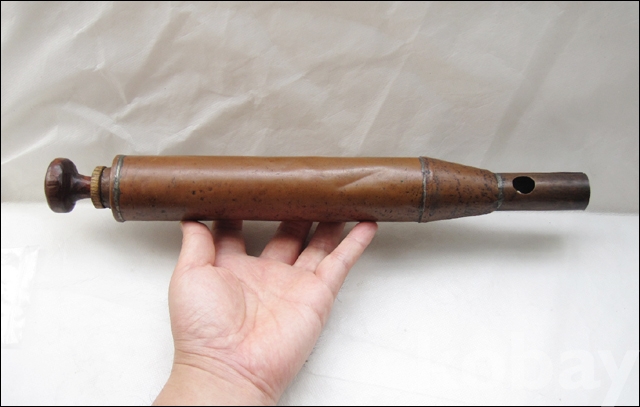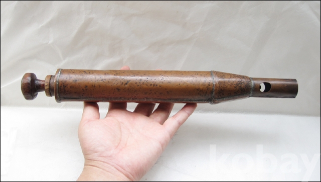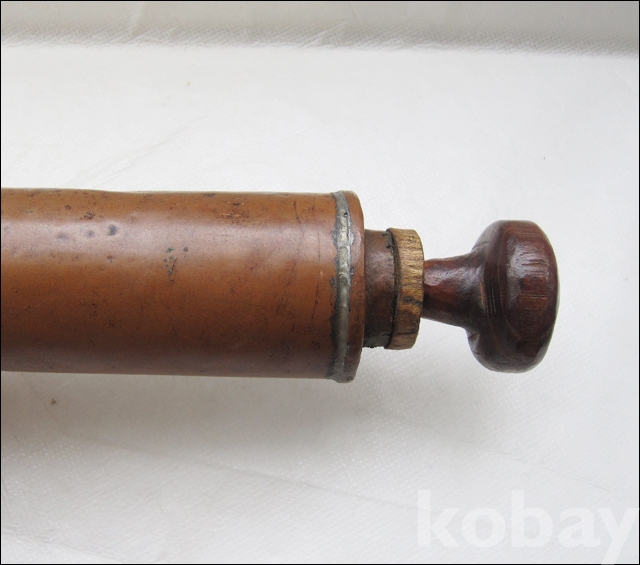 몸통 전체가 구리로 만들어졌구요. 손잡이는 나무입니다.