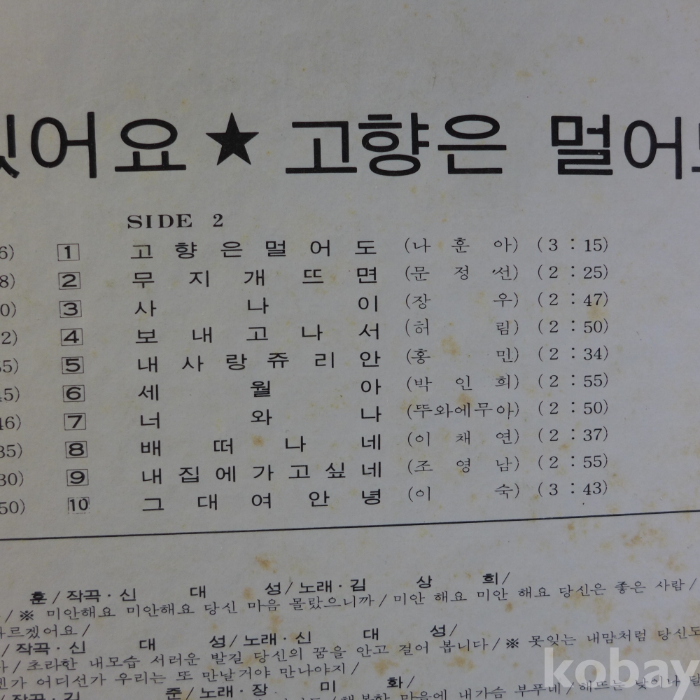 | 자켓상태 | EX : 약간의 마모, 모서리 찢김 존재 | 음반상태 | NM : 개봉했으나 미사용급, 스크래치 없음 | 발매정보 | 초반 | 가사지여부 | 무 |