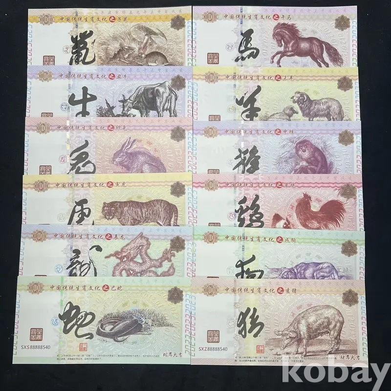 사진이미지와 같이 중국의 사자상 행운의 기념증서 12종세트 이며