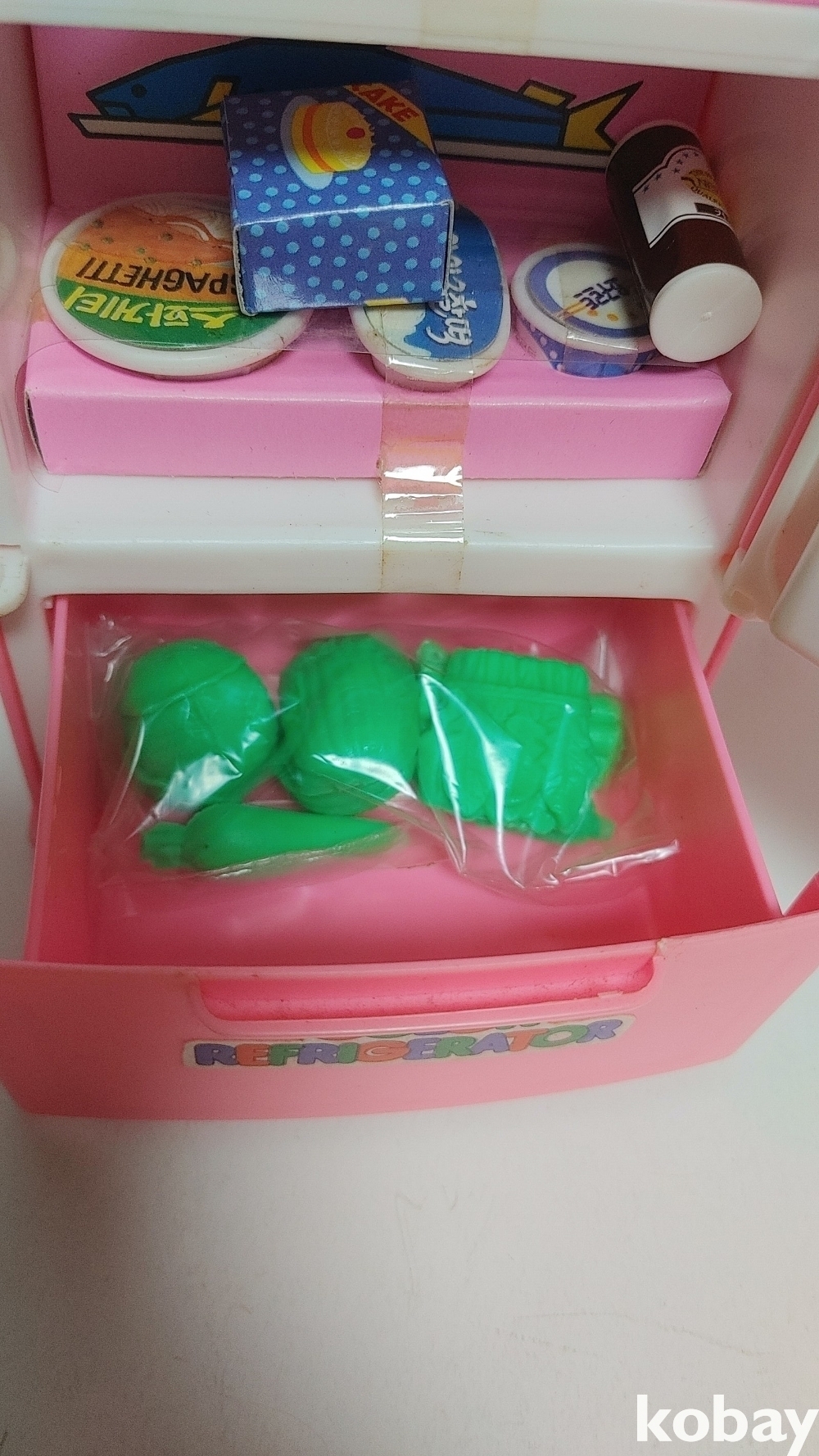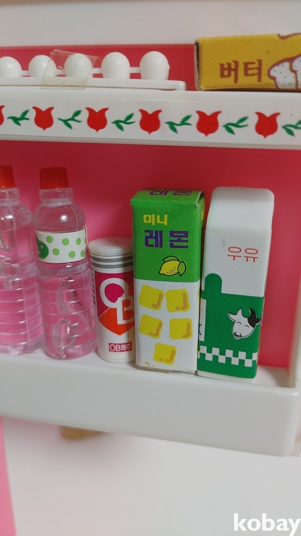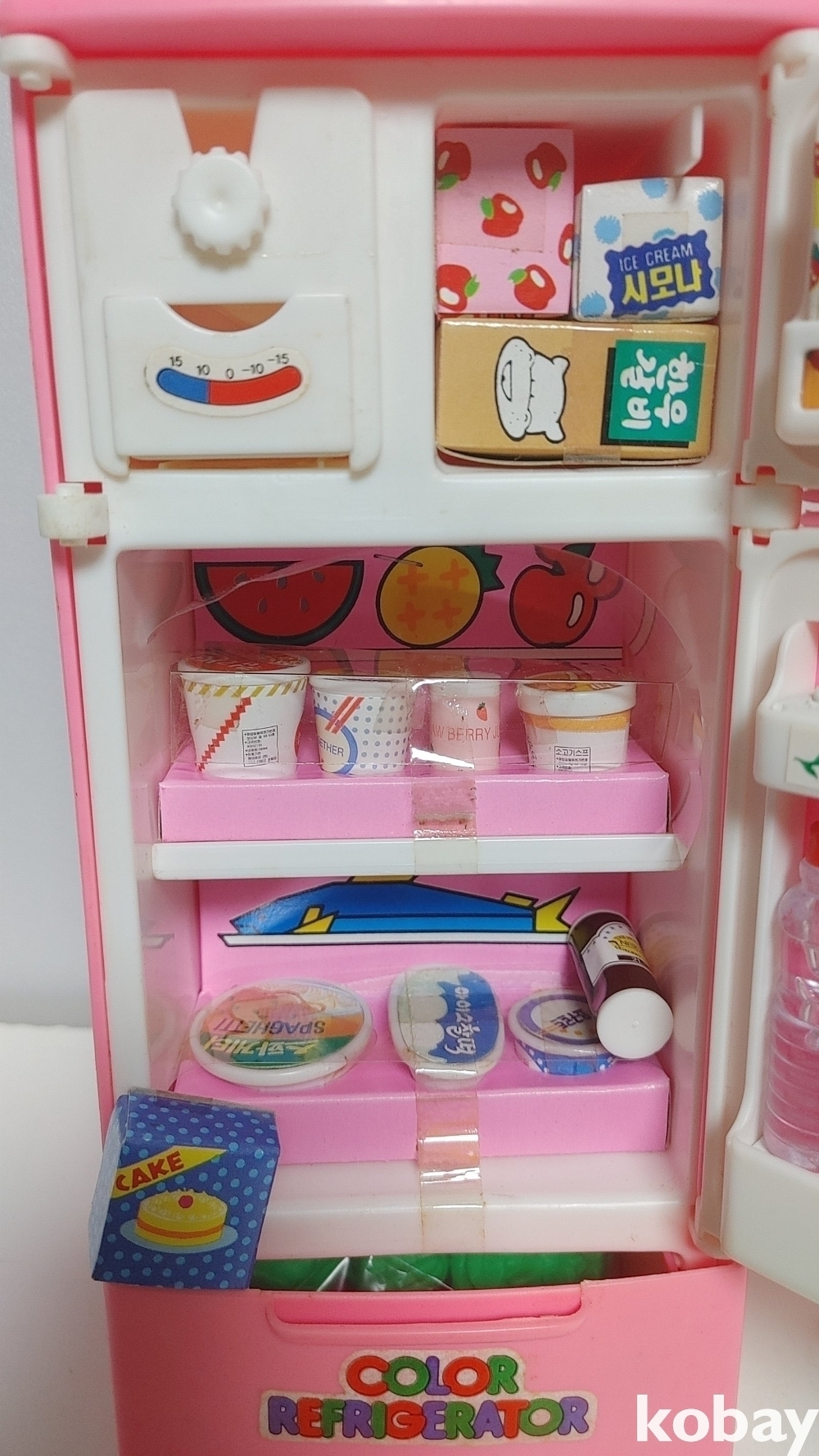 국산 예전 제품으로 냉장고모양에 여러가지 소품들이 들어있습니다