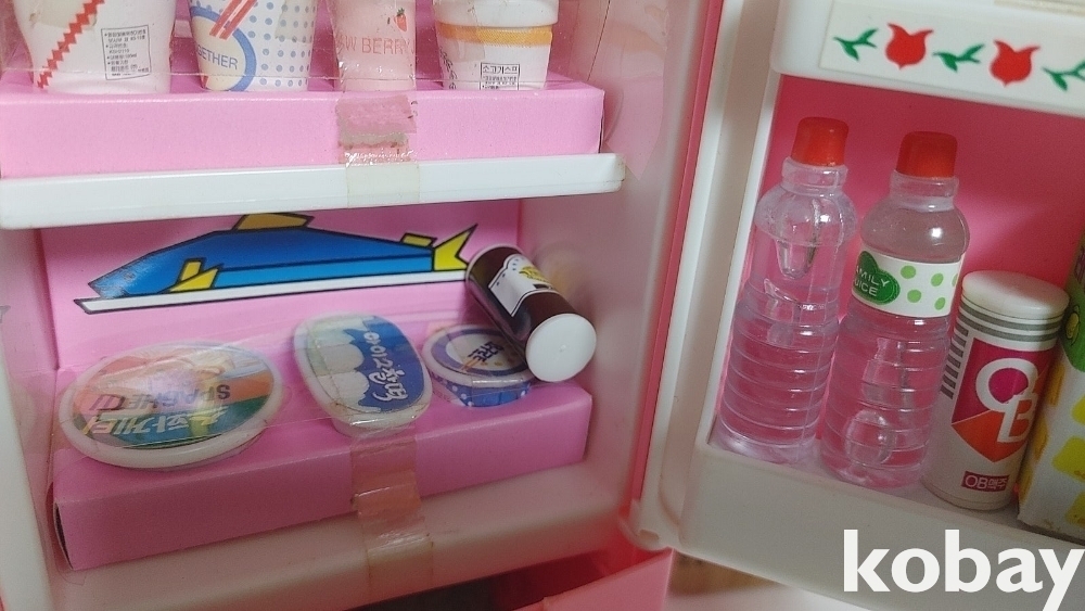 추억의 미니어쳐 양문형 냉장고모형 장난감입니다
