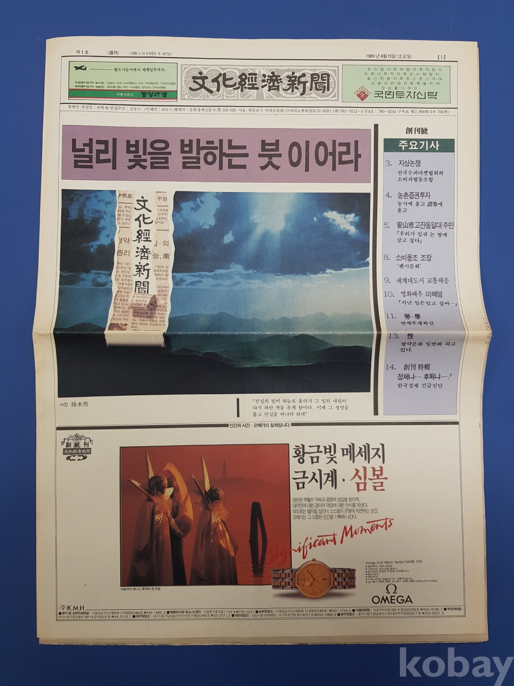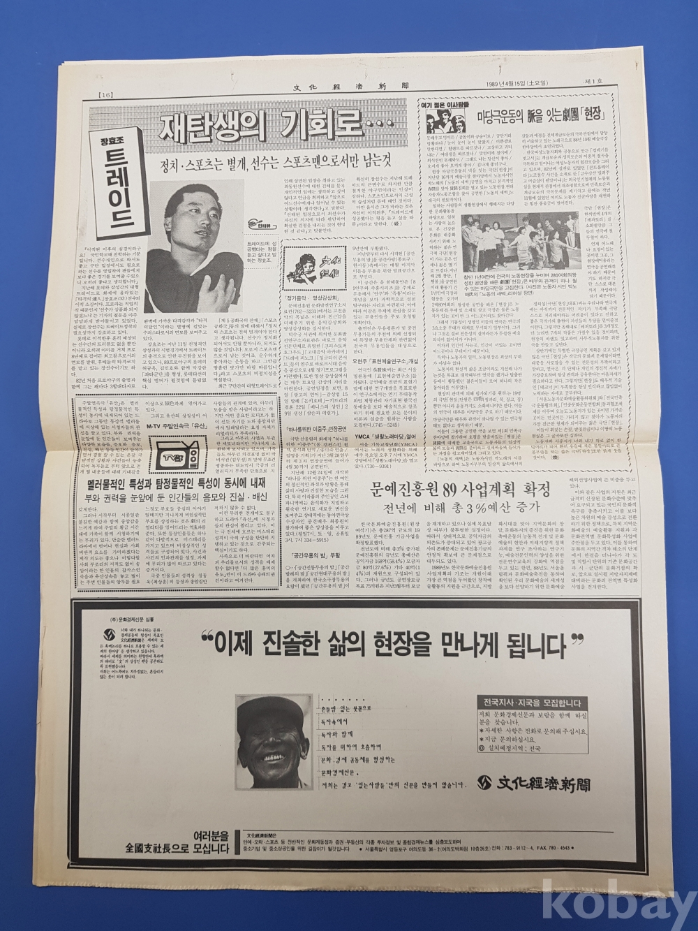 창간호 신문 [文化經濟新聞]. 1989년 4월 15일. 총 16면