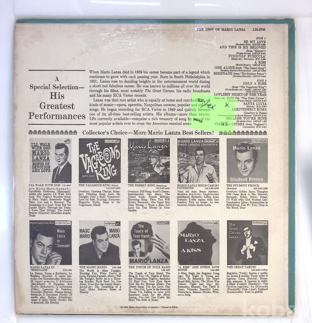 Mario Lanza – The Best Of Mario Lanza / 미국반 / MONO