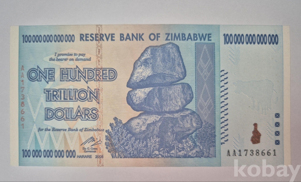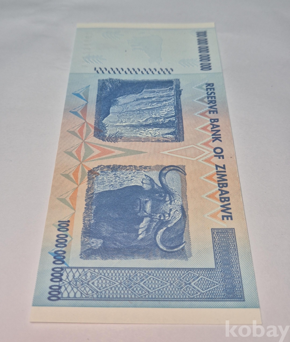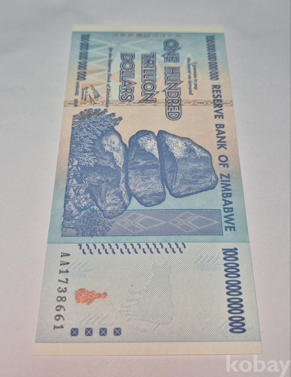 2008년경 발행된 짐바브웨 100조(100,000,000,000,000) 달러 / 백조 달러 지폐 미사용입니다.