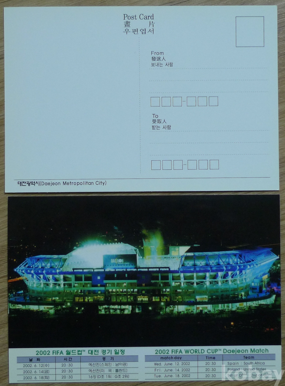 2002한일월드컵 대전 경기장 기념 엽서