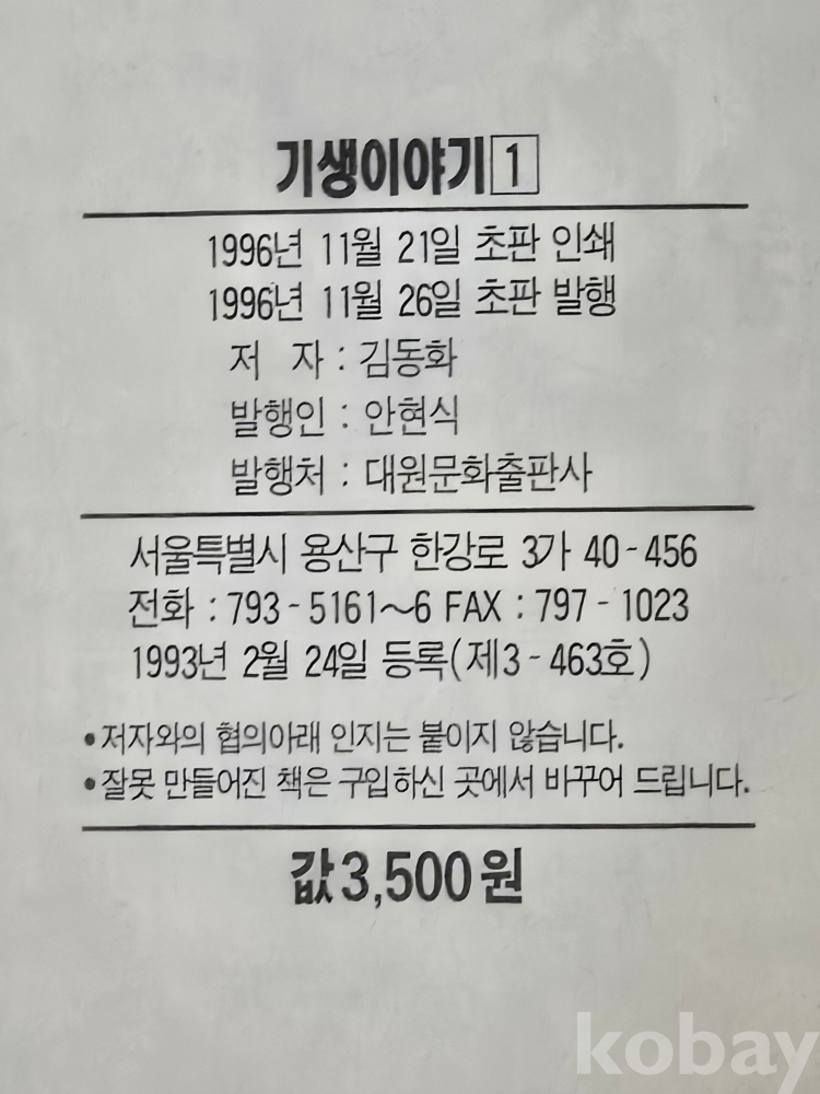 성인만화 == 기생이야기 1권 == 김동화 지음 . 1996년 초판