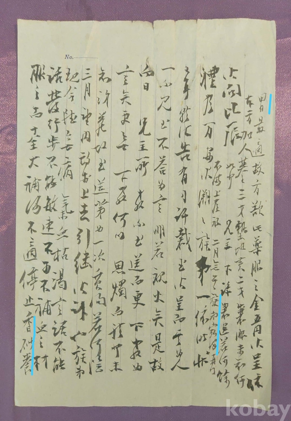 ◈ 세로 줄이 그어진 양지에 작은 글씨로 적었다.
