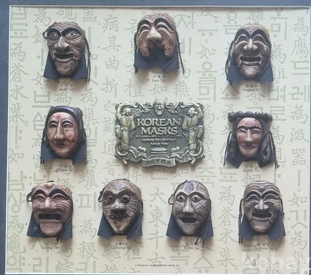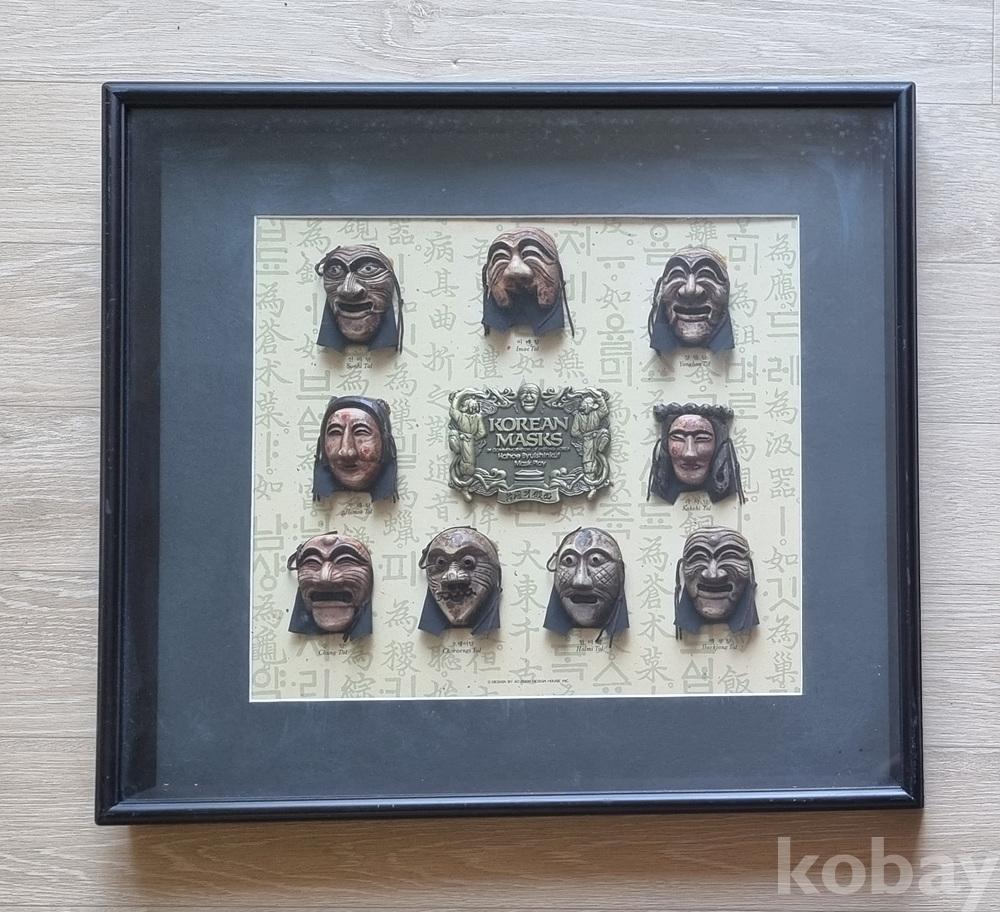[작품 내용] 국보로 지정된 한국의 전통 가면인 하회탈을 작게 축소하여 액자에 담은 세트 상품입니다.