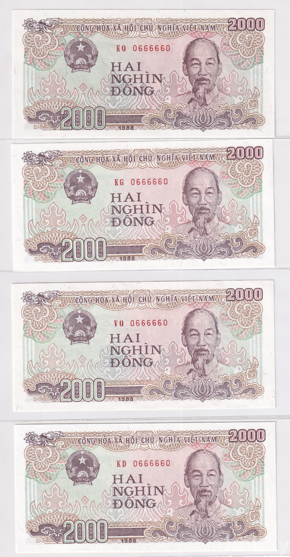 [베트남 지폐 특이번호 모음展] 1988년 2000동 0 66666 0 투 디지트 오봉 레이더 4쌍둥이