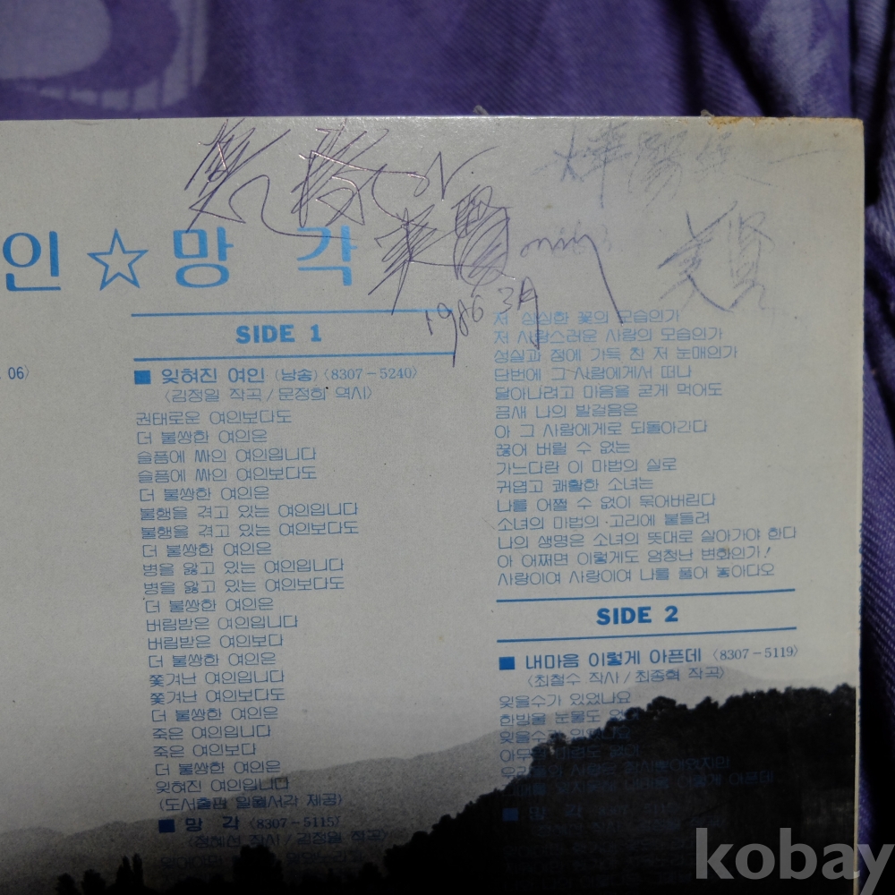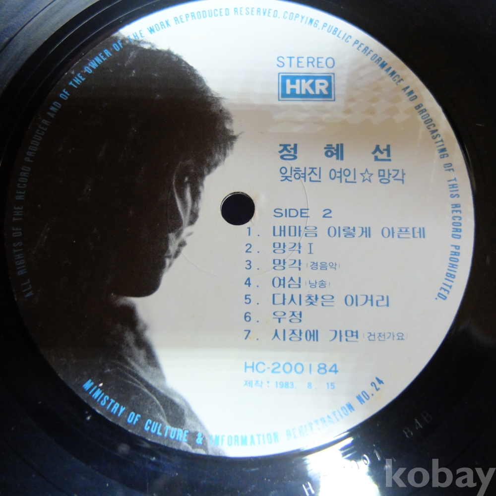 | 자켓상태 | VG : 주름, 접힘, 모서리 찢김 다수 | 음반상태 | VG : 생활 기스 다수, 가벼운 노이즈 존재 | 발매정보 | 초반 | 가사지여부 | 무 |