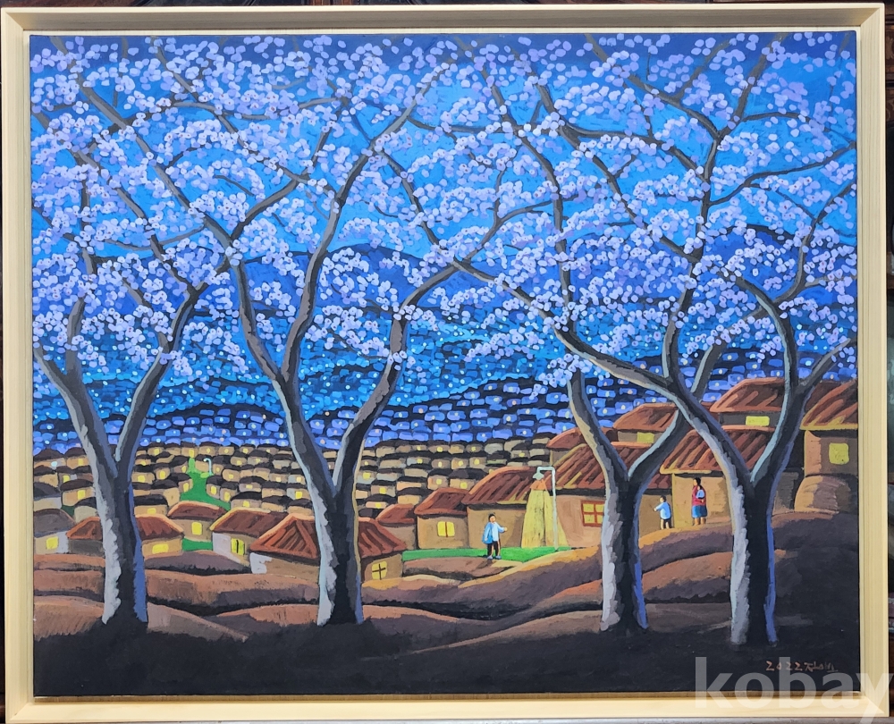 설종보 화백 수암골마을 밤마중 아크릴 30호 원목 새액자 입니다