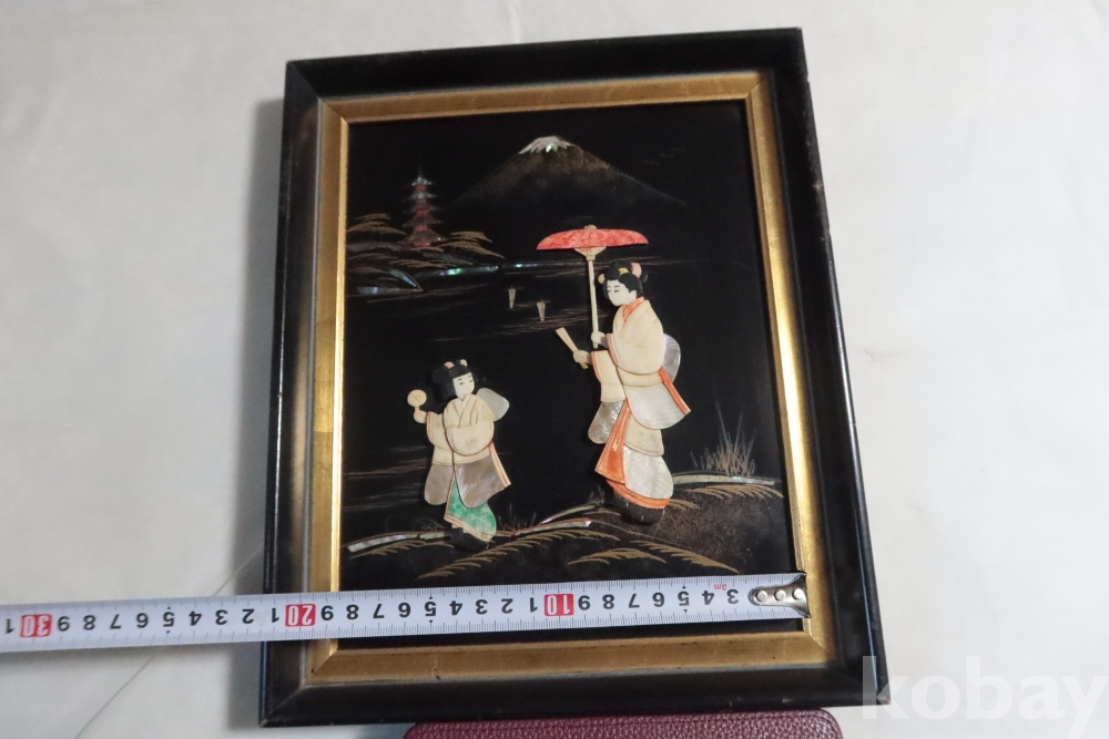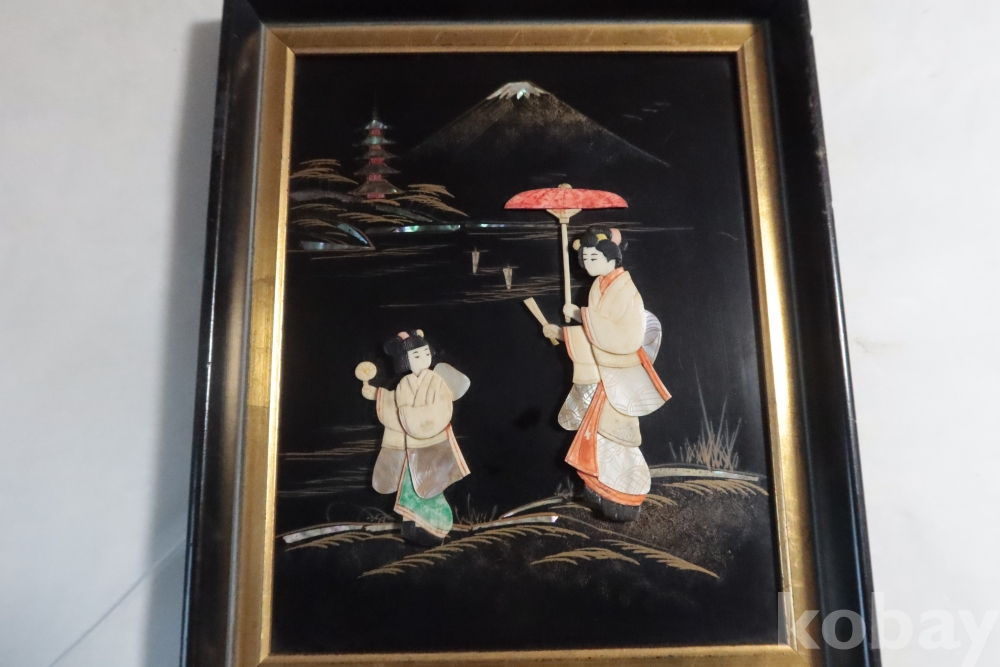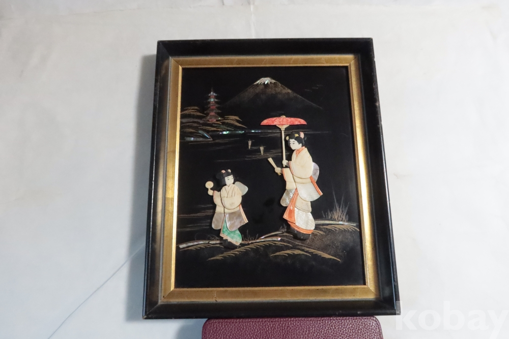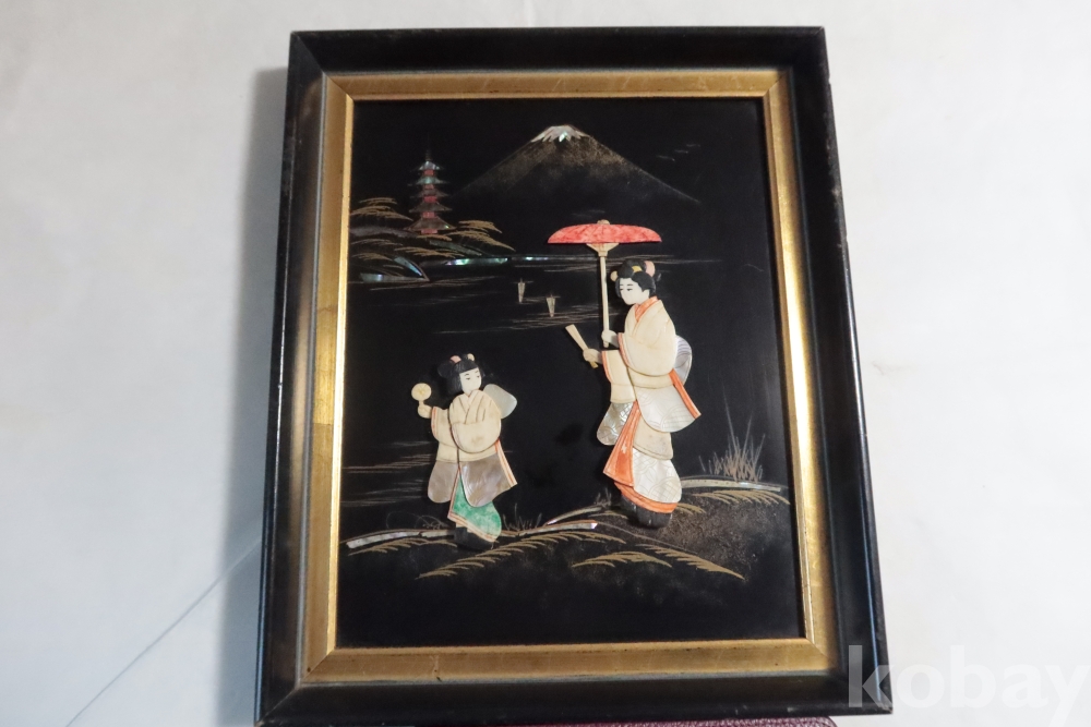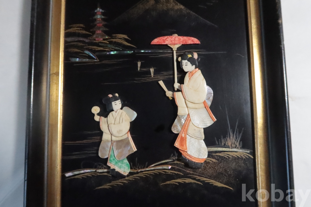두터운 부조 감을 가진 모녀를 표현한 수작 임니다 여러종류의 고가의 재료로 만든 1930대의 멋진 명품 임니다 액자는 세월의 흔적이 보임니다