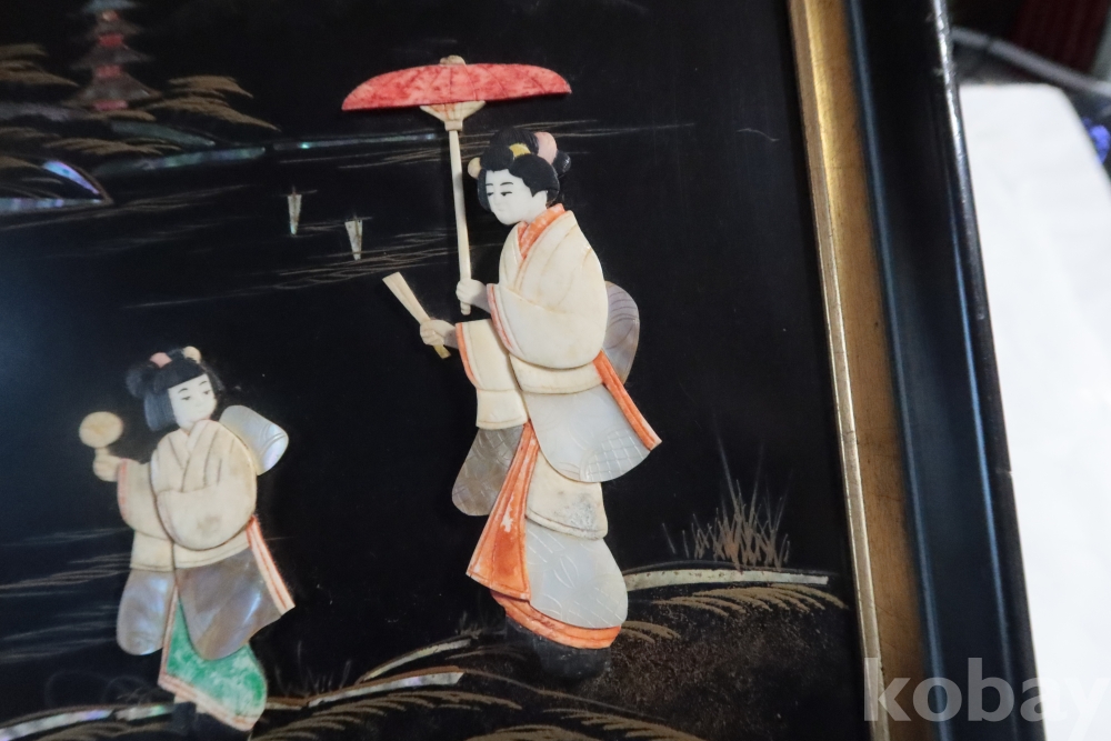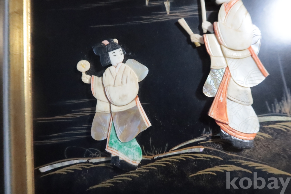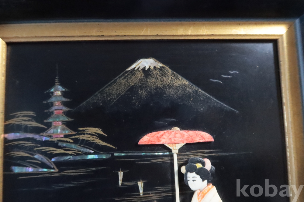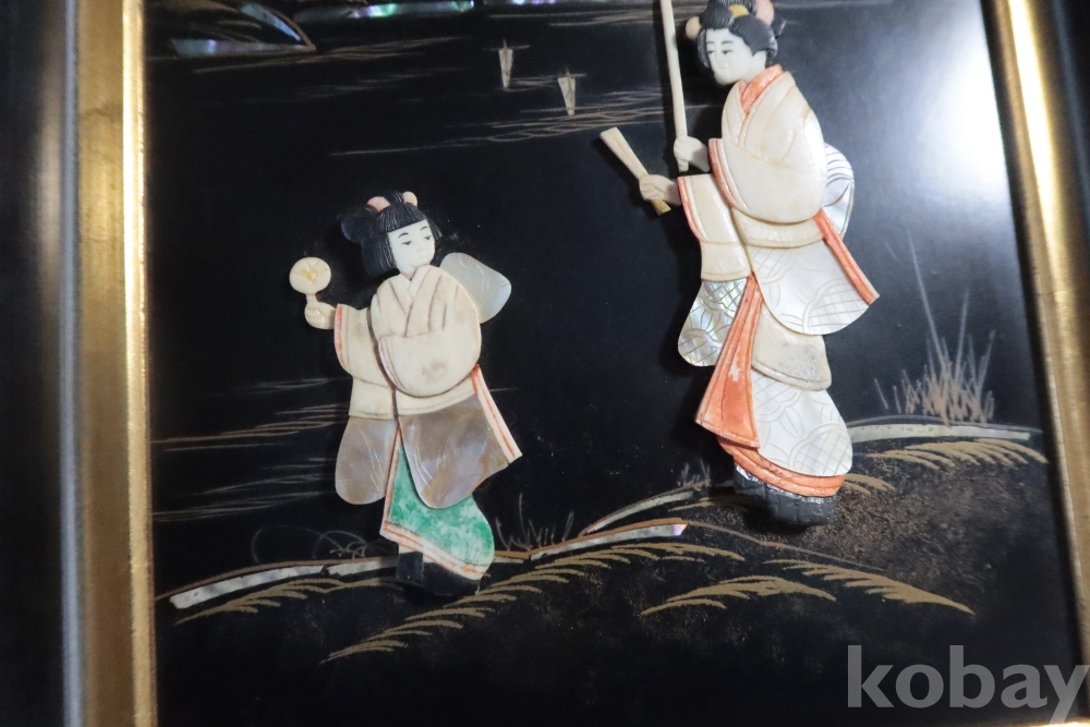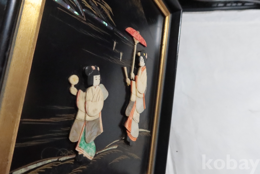 두터운 부조 감을 가진 모녀를 표현한 수작 임니다 여러종류의 고가의 재료로 만든 1930대의 멋진 명품 임니다 액자는 세월의 흔적이 보임니다