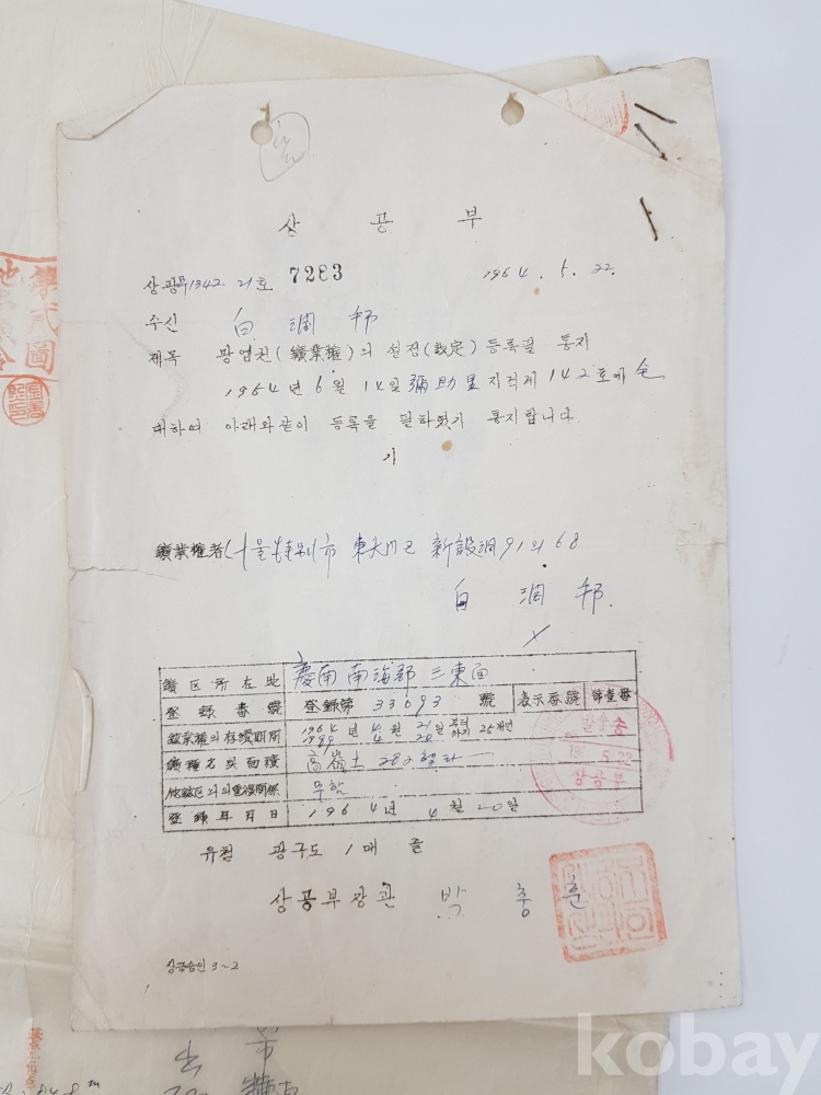 **** 상공부/광업권의 설정 등록필 통지서/1964.5.22