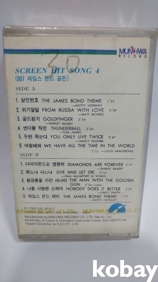추억의 007 제임스본드 영화 음악 카세트 테이프 미개봉