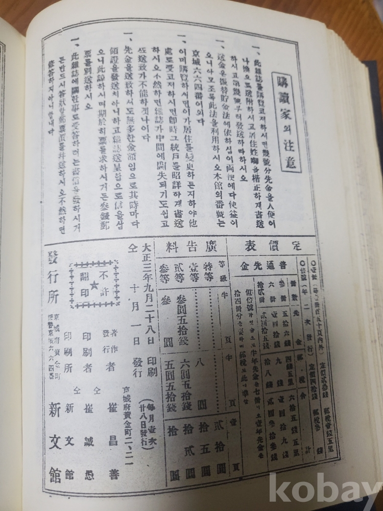 소년 창간호(1908년, 86쪽) / 청춘 창간호(1914년, 180쪽) 및 부록(106쪽) /